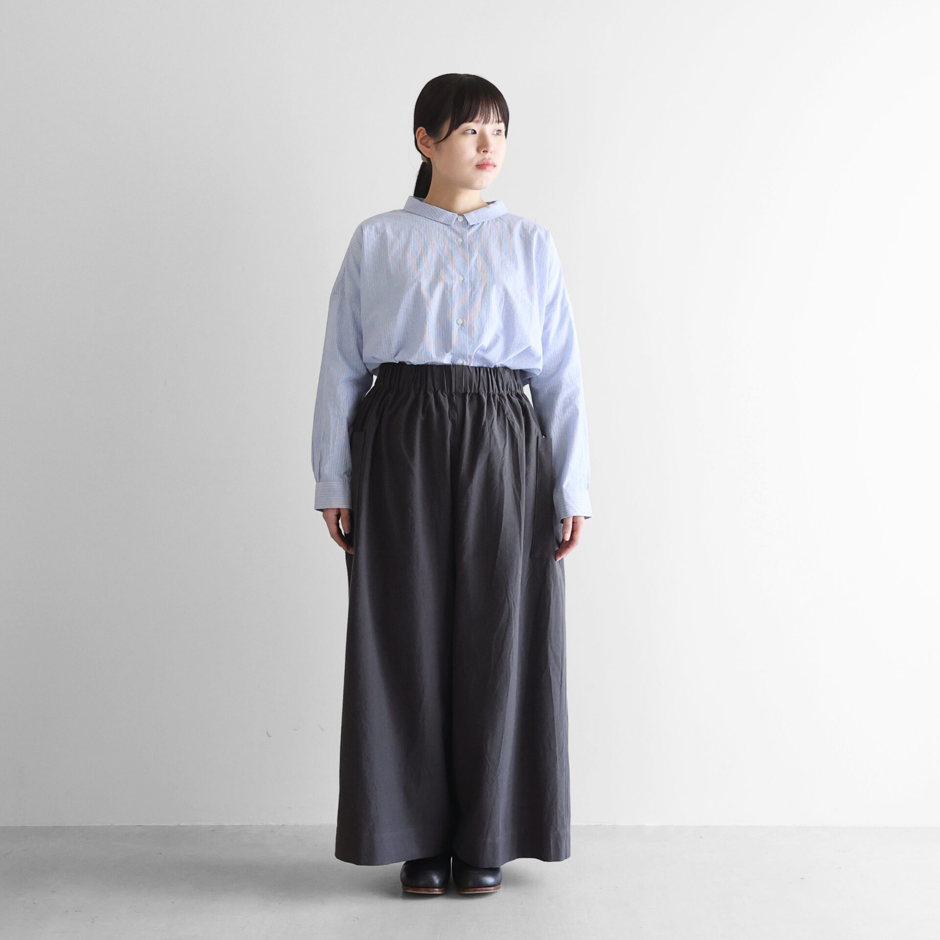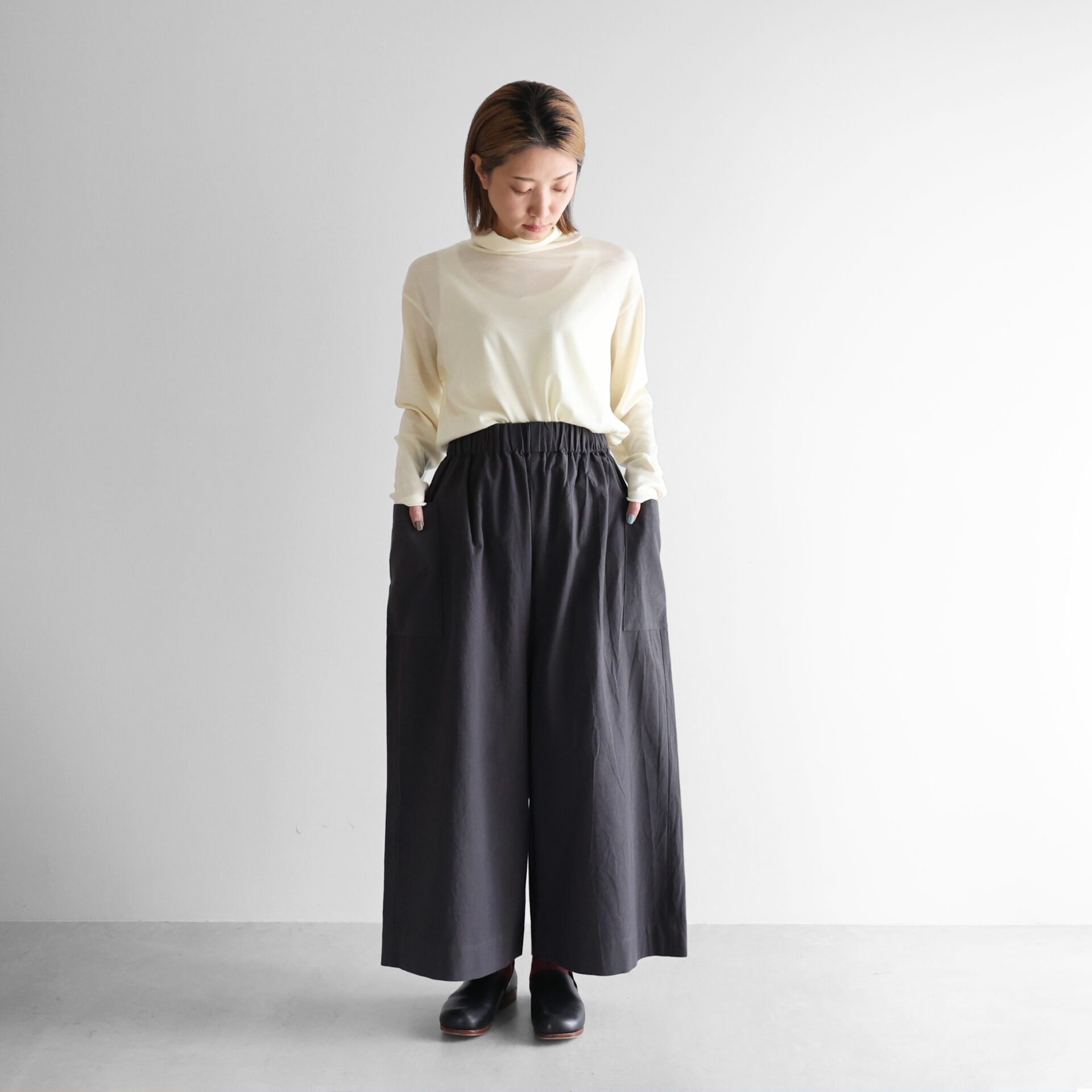 ウエストは総ゴム仕様で、どんな動きにもやさしく寄り添う快適な穿き心地。日常の中にも、少し特別な時間にも、心地よさをそのまま纏える一着です。