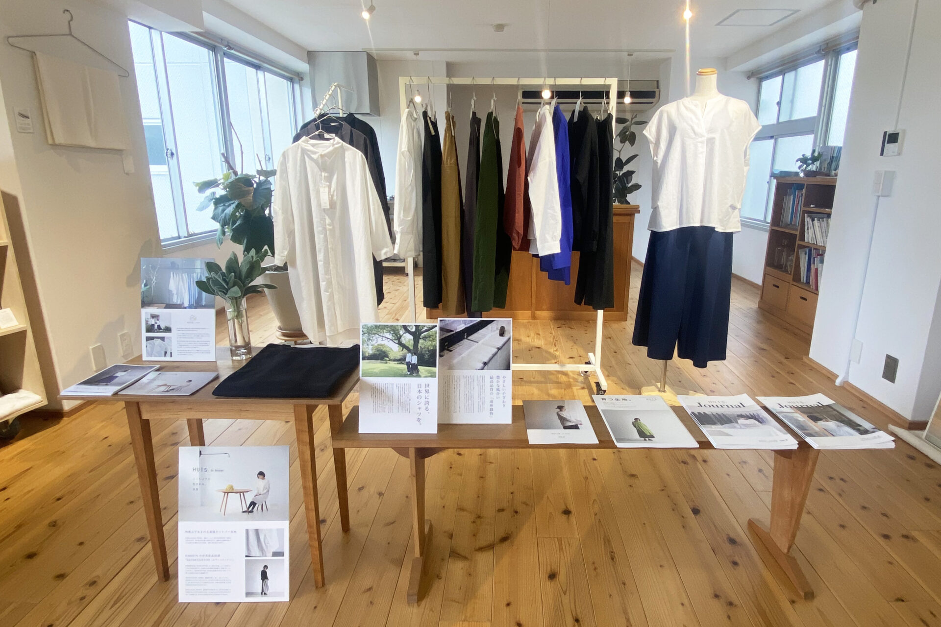 「marru素sou」さんは常設取扱店としてHUISのお洋服を常時ご覧いただけますが、POPUP期間中は春の新作をより豊富なラインナップをお試しいただけます。