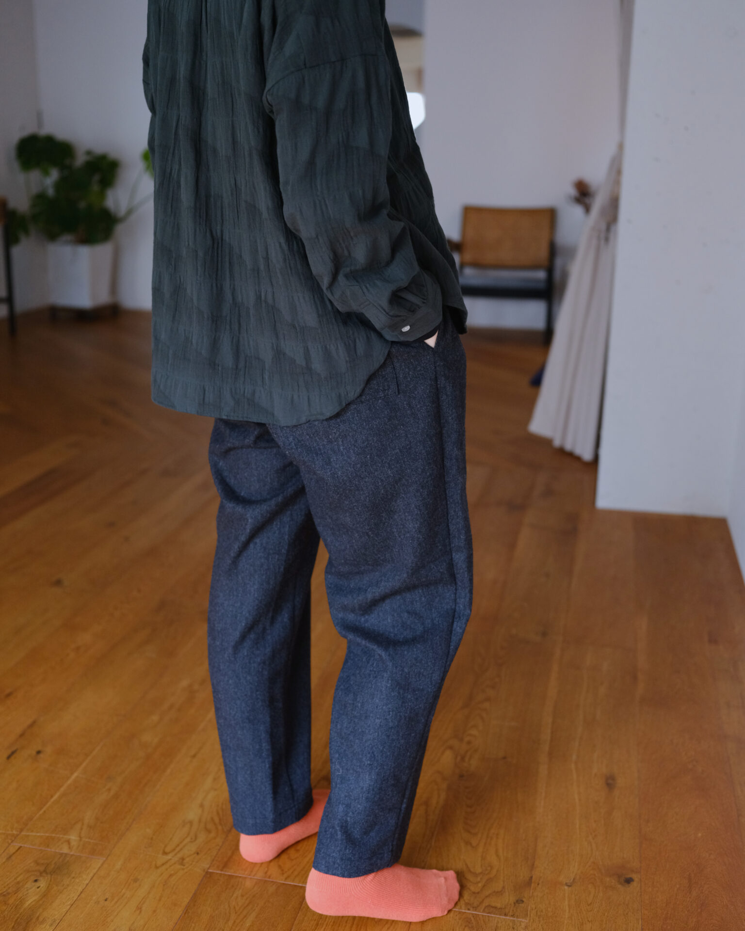 “HUIS×尾州”ウールトロイージープレーンパンツ