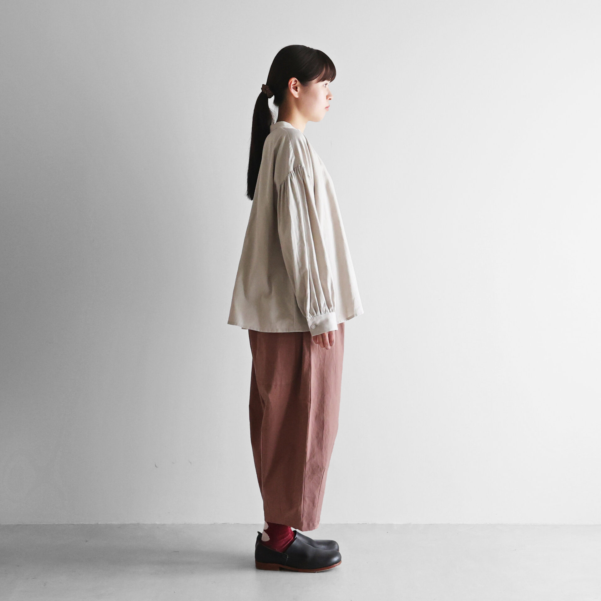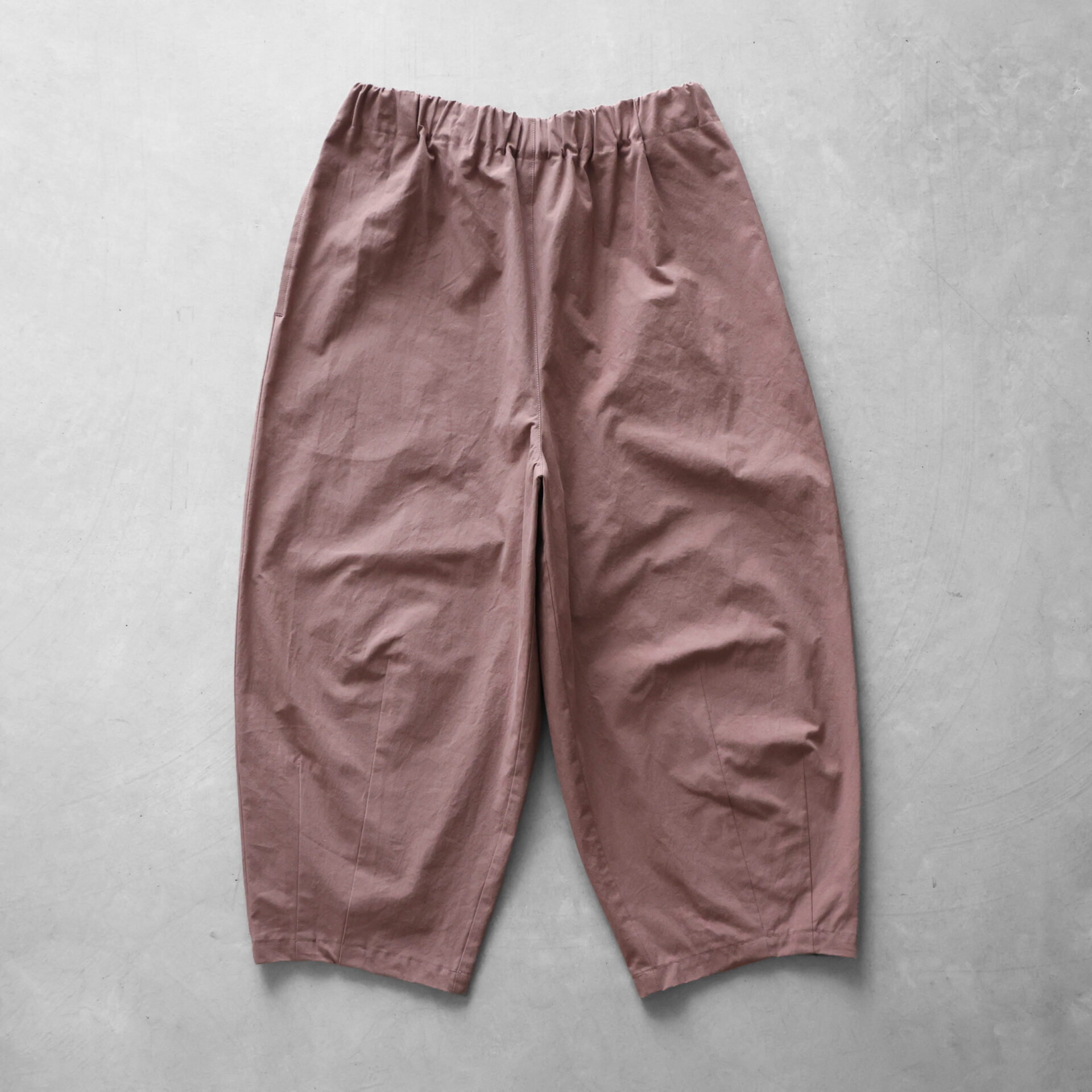 低速のシャトル織機で織られたバフクロスを使用したシンプルなバルーンパンツです。