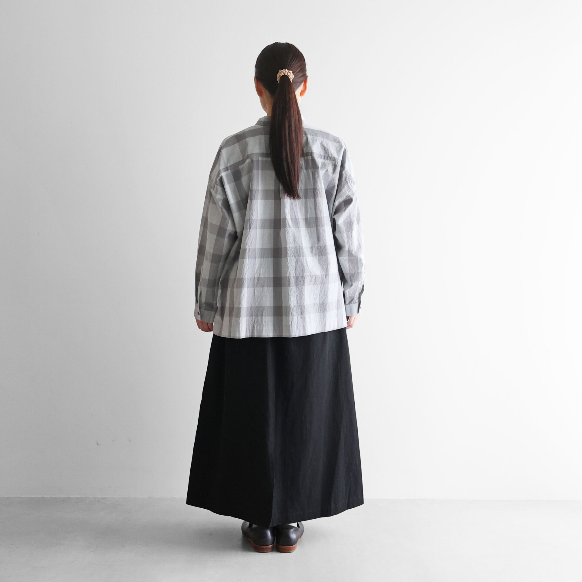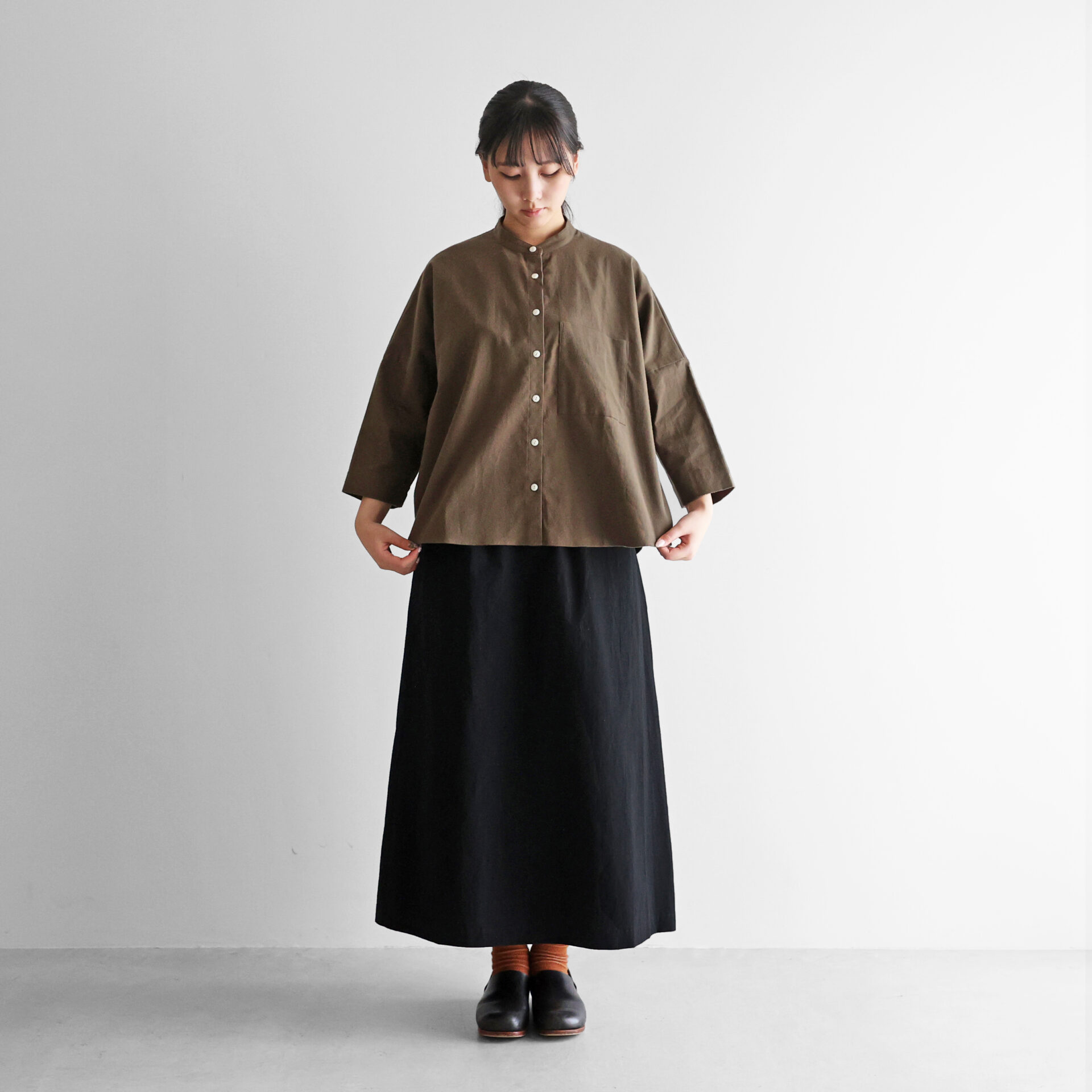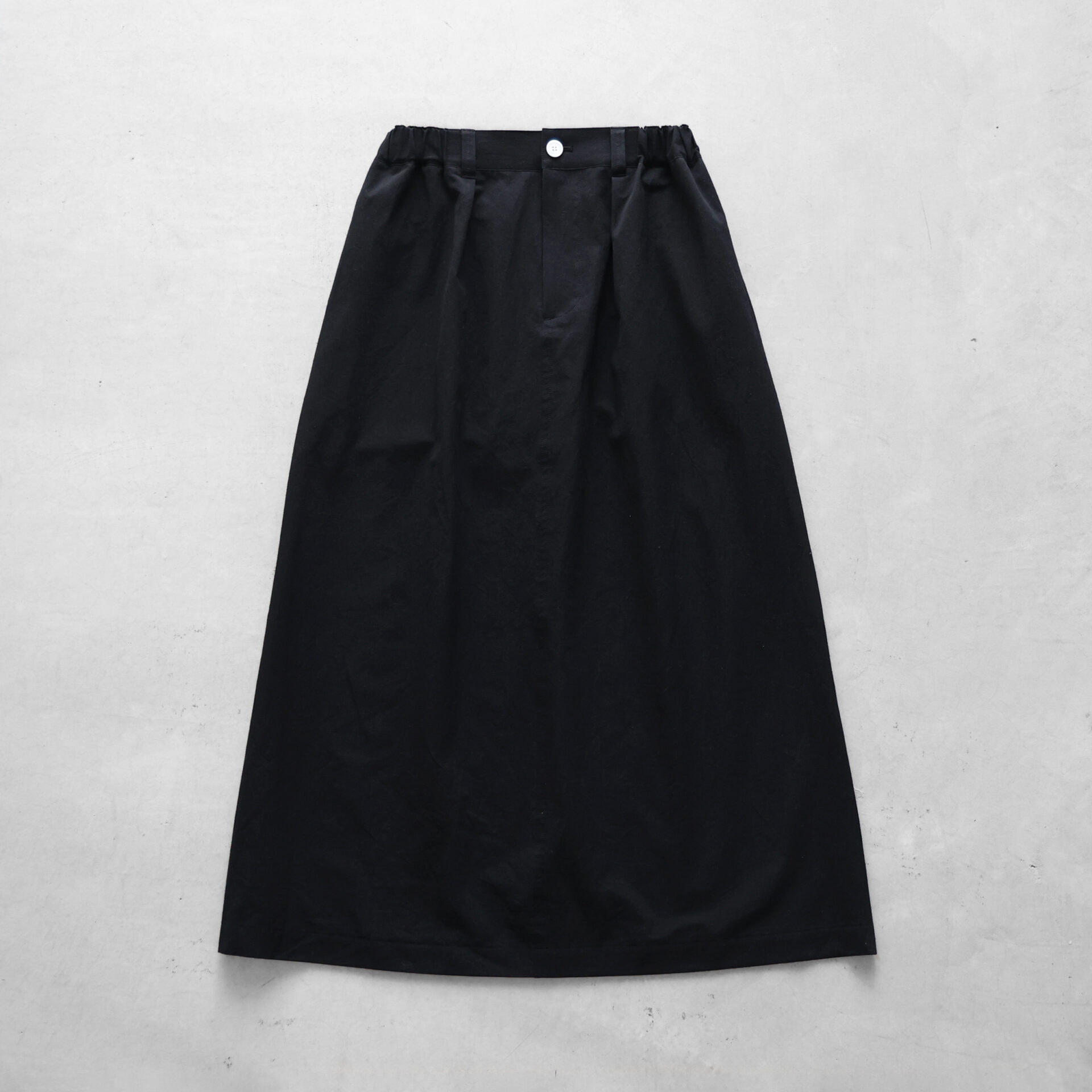 シンプルなデザインのプレーンスカートは、後ろ側に適度なスリットが入り、ウエストがゴム仕様となっていますのでどなたにもリラックスして履いていただける形となっています。(ベルトループもあるためベルトで閉めることも可能です)