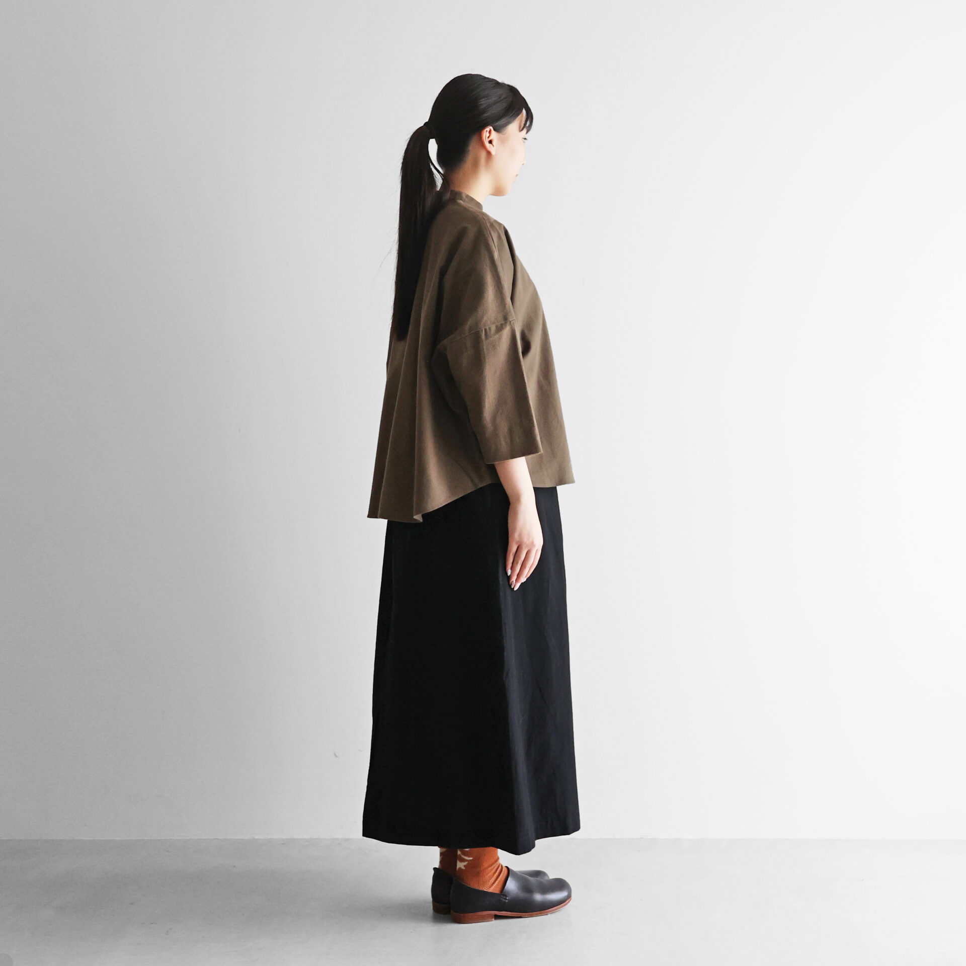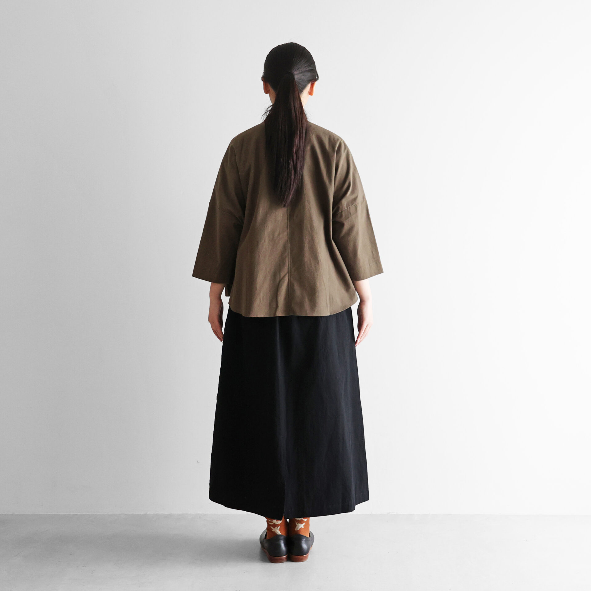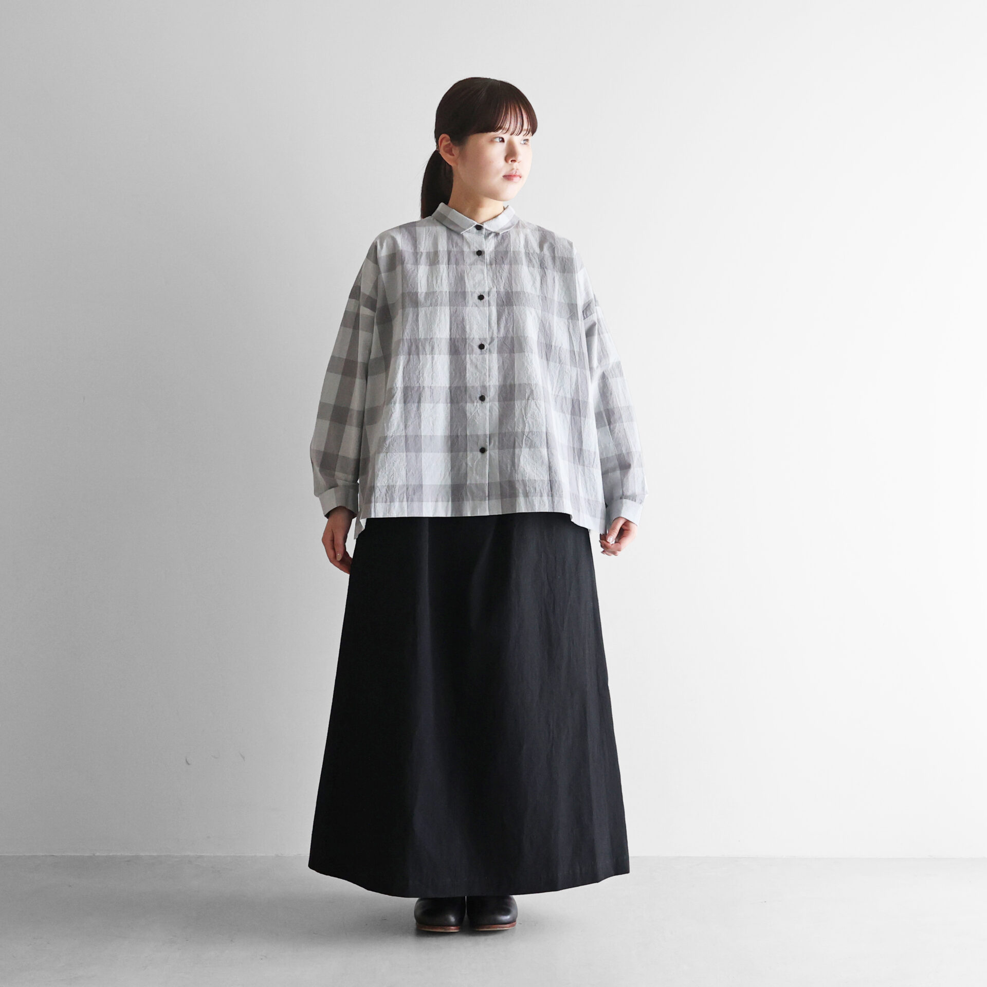 シンプルなデザインのプレーンスカートは、後ろ側に適度なスリットが入り、ウエストがゴム仕様となっていますのでどなたにもリラックスして履いていただける形となっています。(ベルトループもあるためベルトで閉めることも可能です)