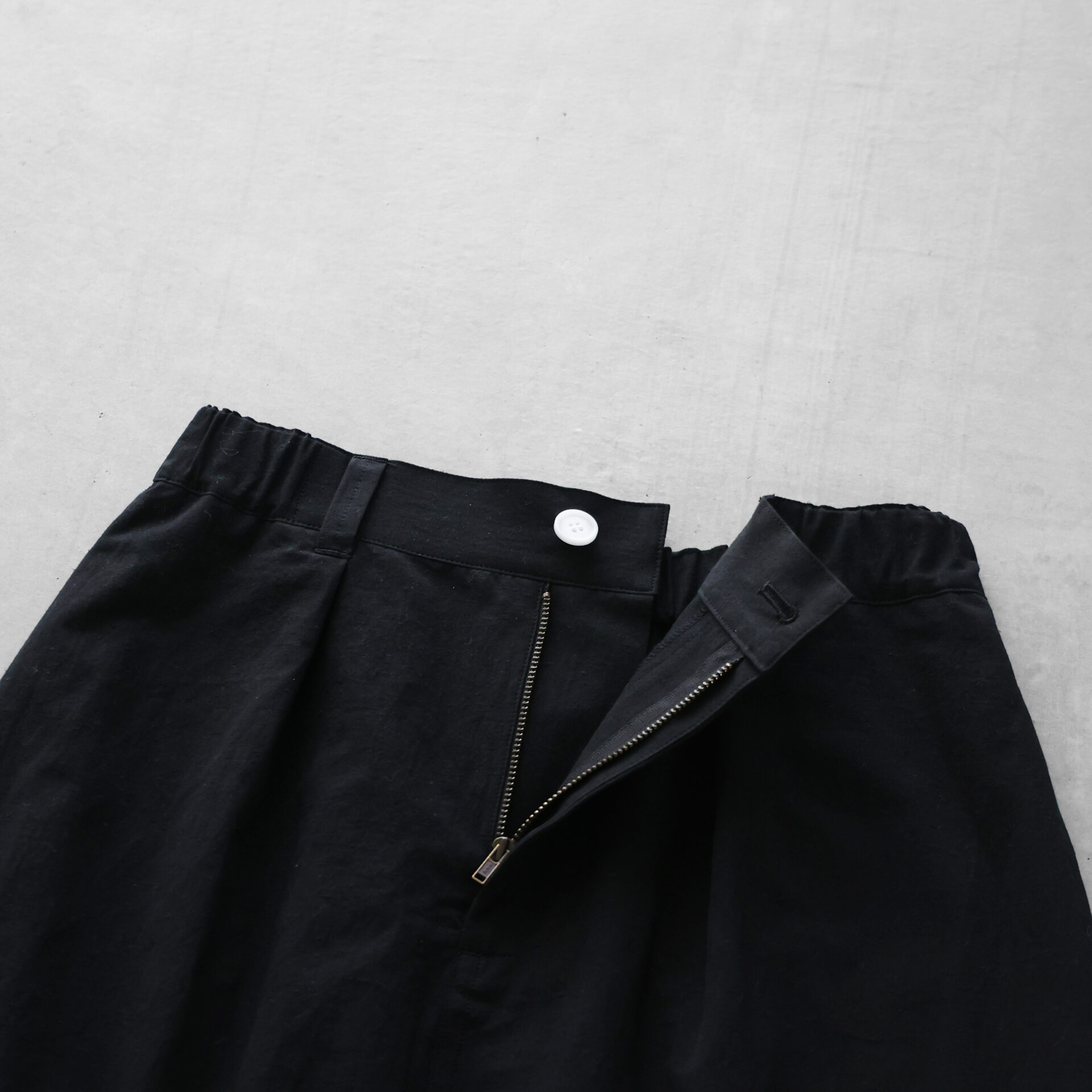 後ろ側についた二つの大きなポケットが特徴。ウエストの裏側や、手を入れるポケットの内側にあしらわれたキナリの生地もポイントです。