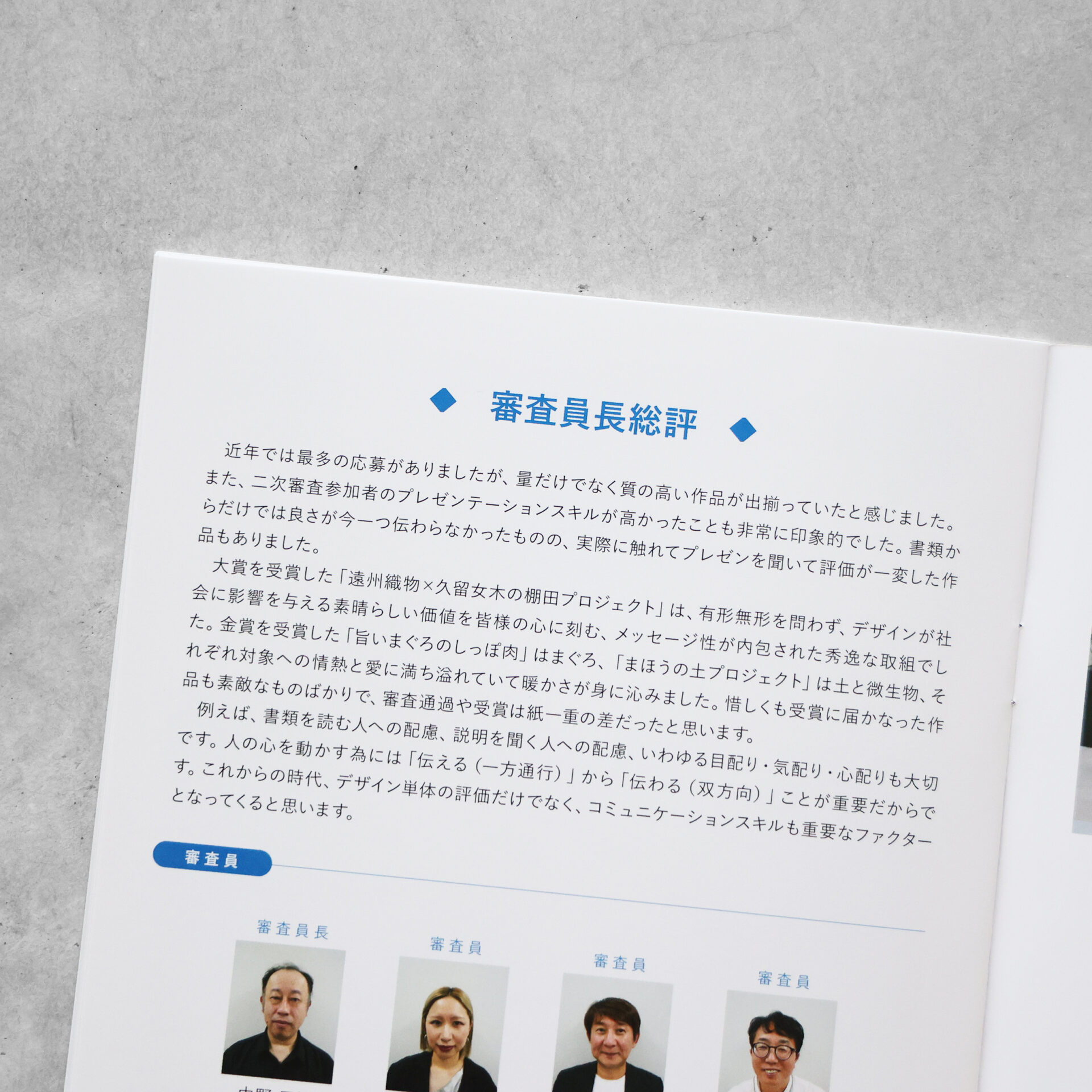 リーフレットには、受賞に至った選定評も掲載されています。