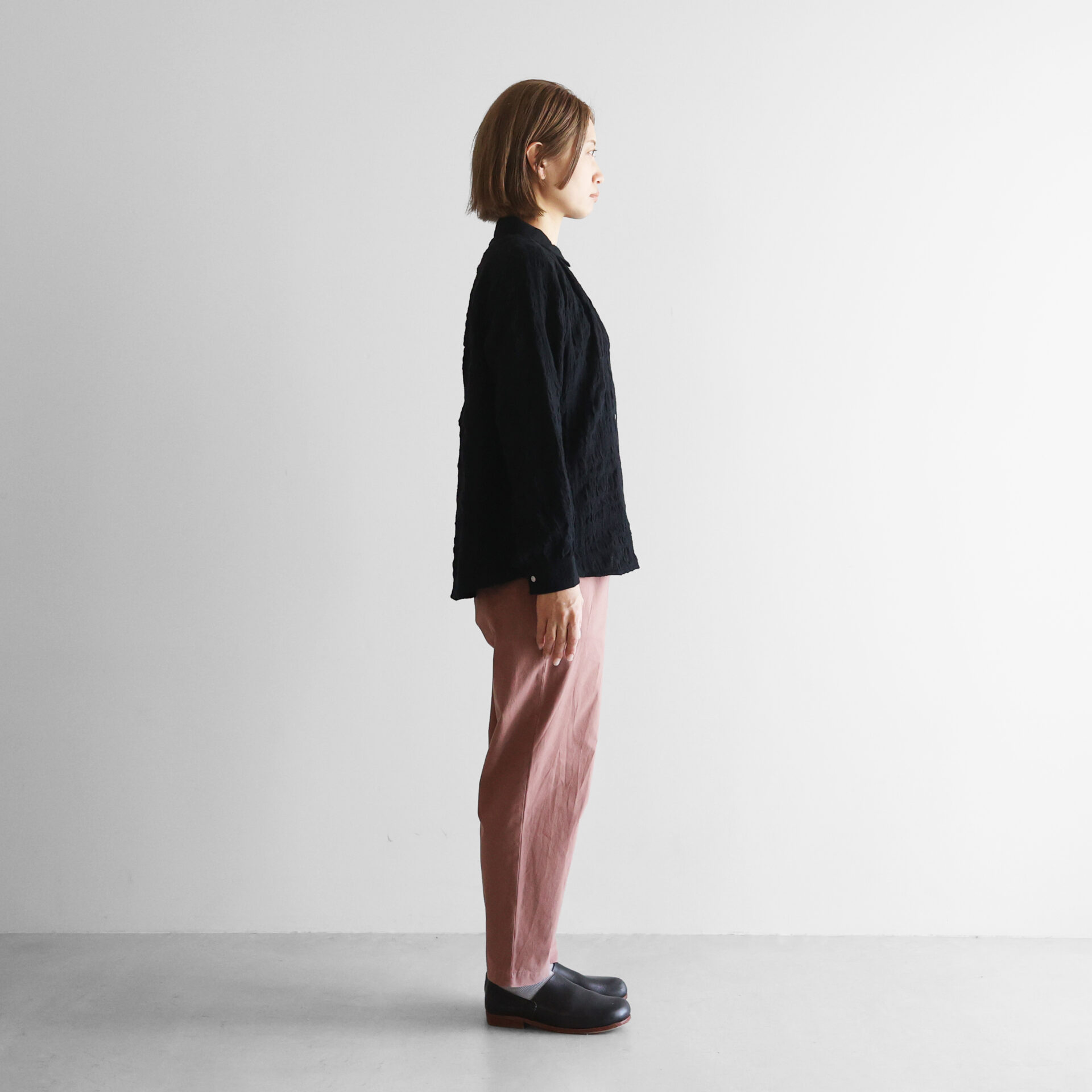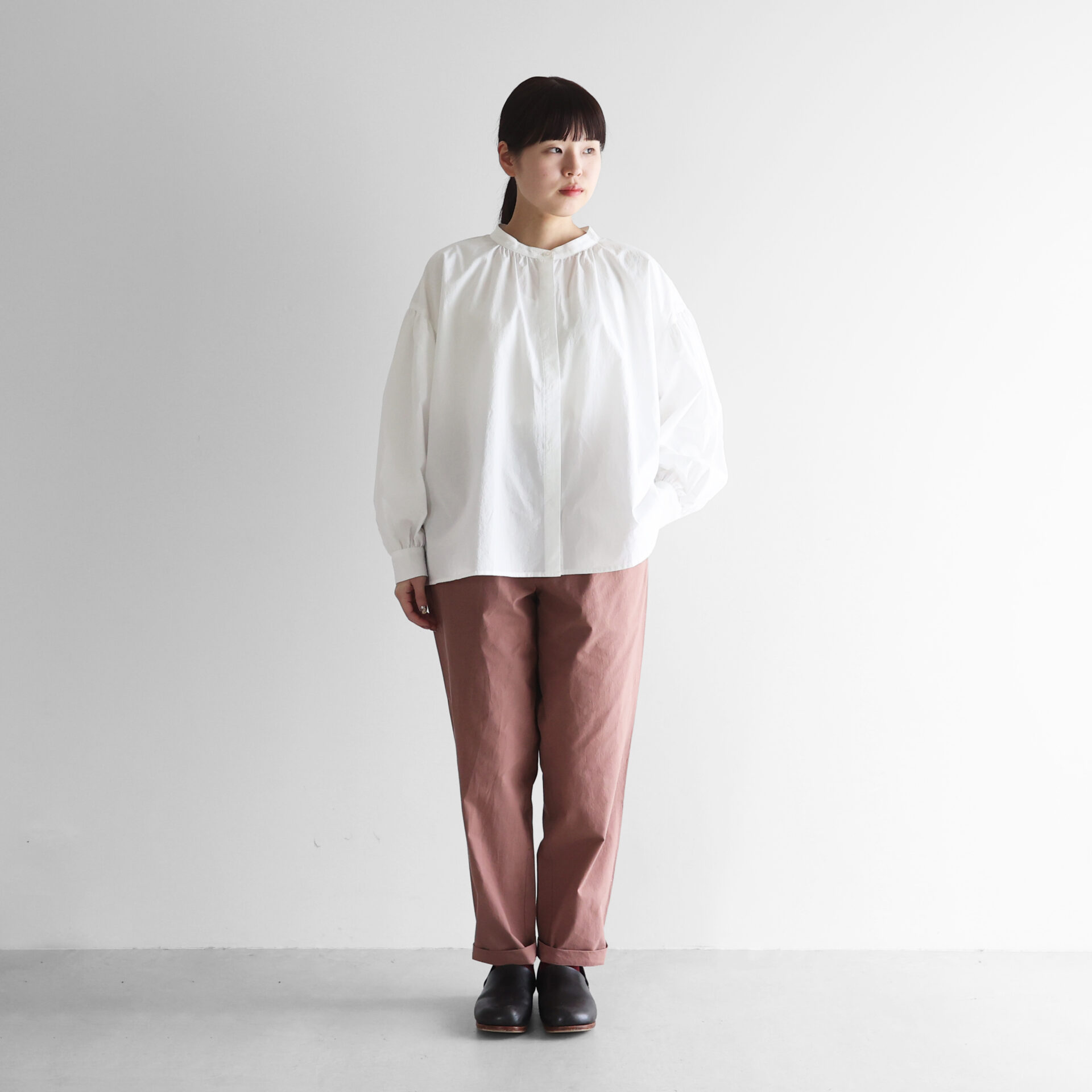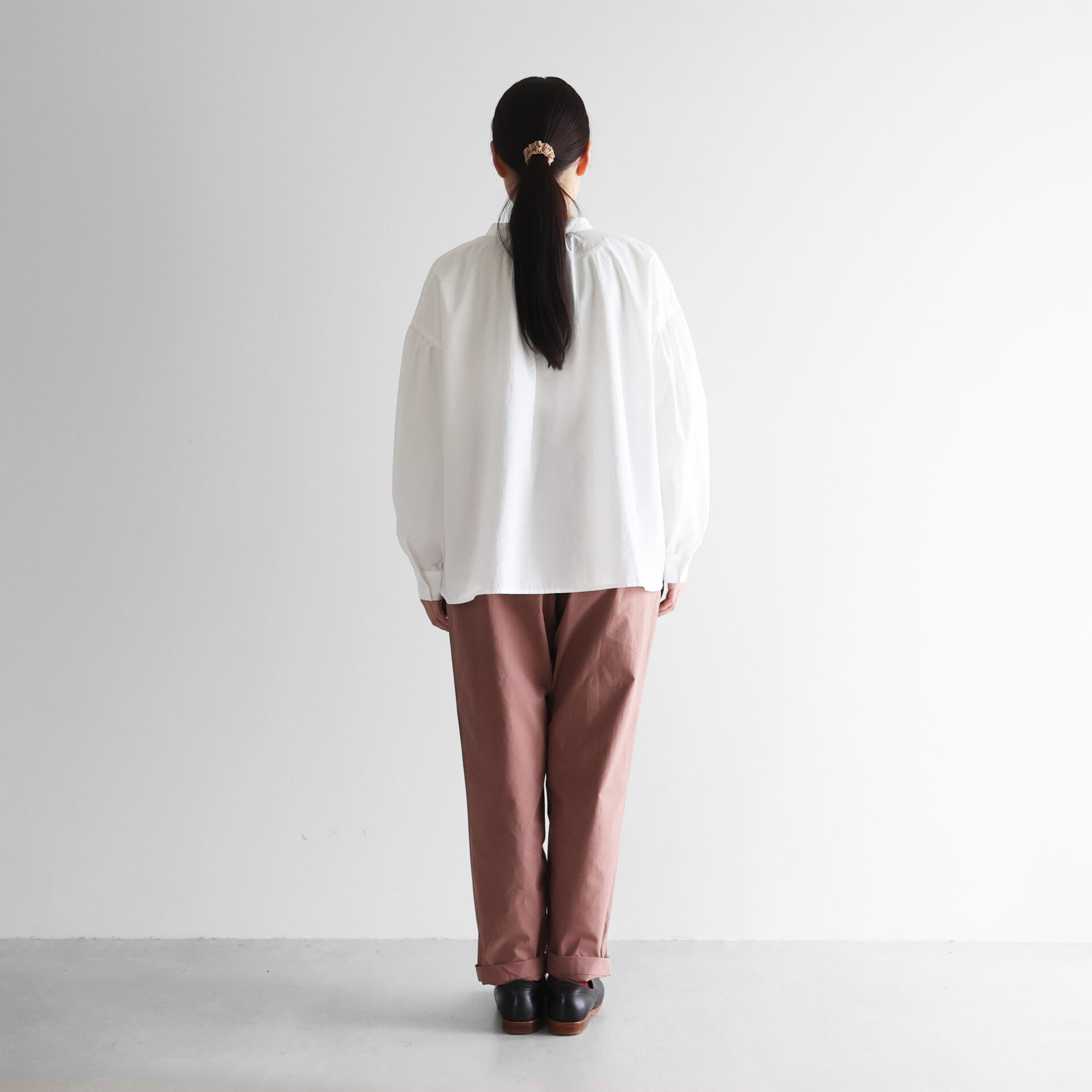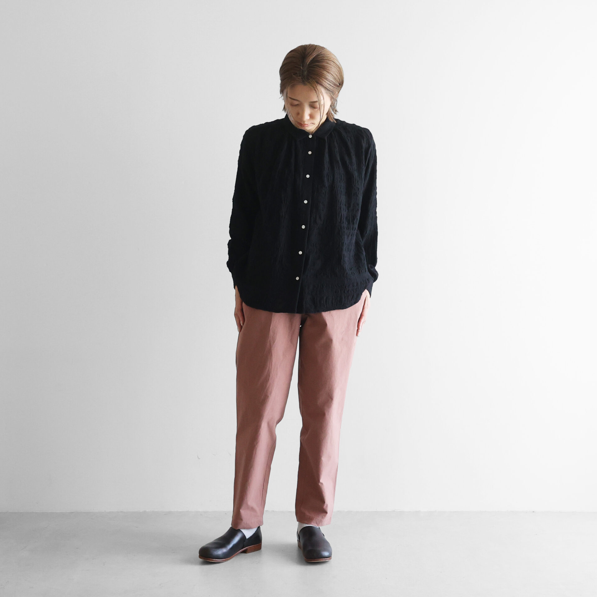 低速のシャトル織機で織られたバフクロスを使用したシンプルなパンツです。