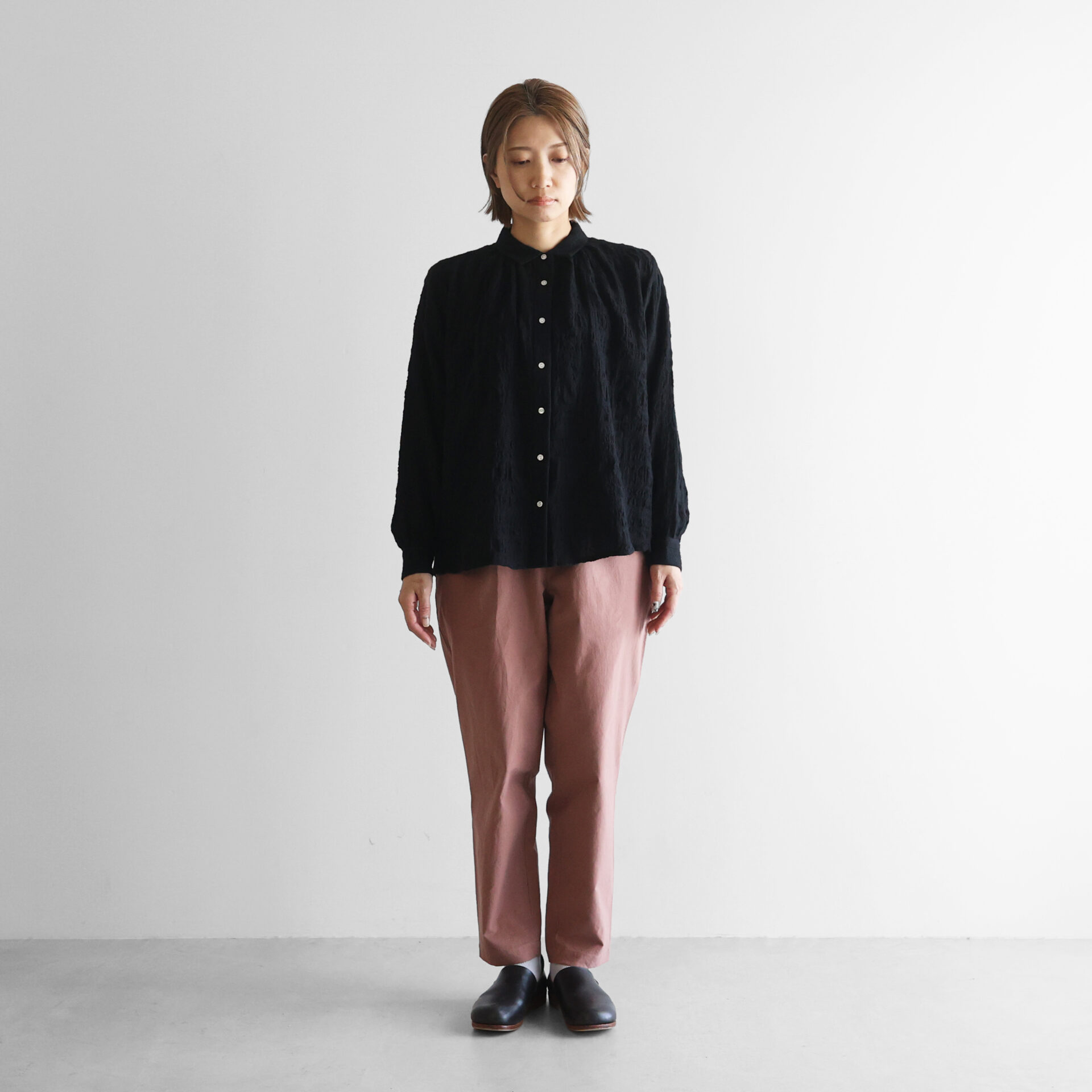 低速のシャトル織機で織られたバフクロスを使用したシンプルなパンツです。