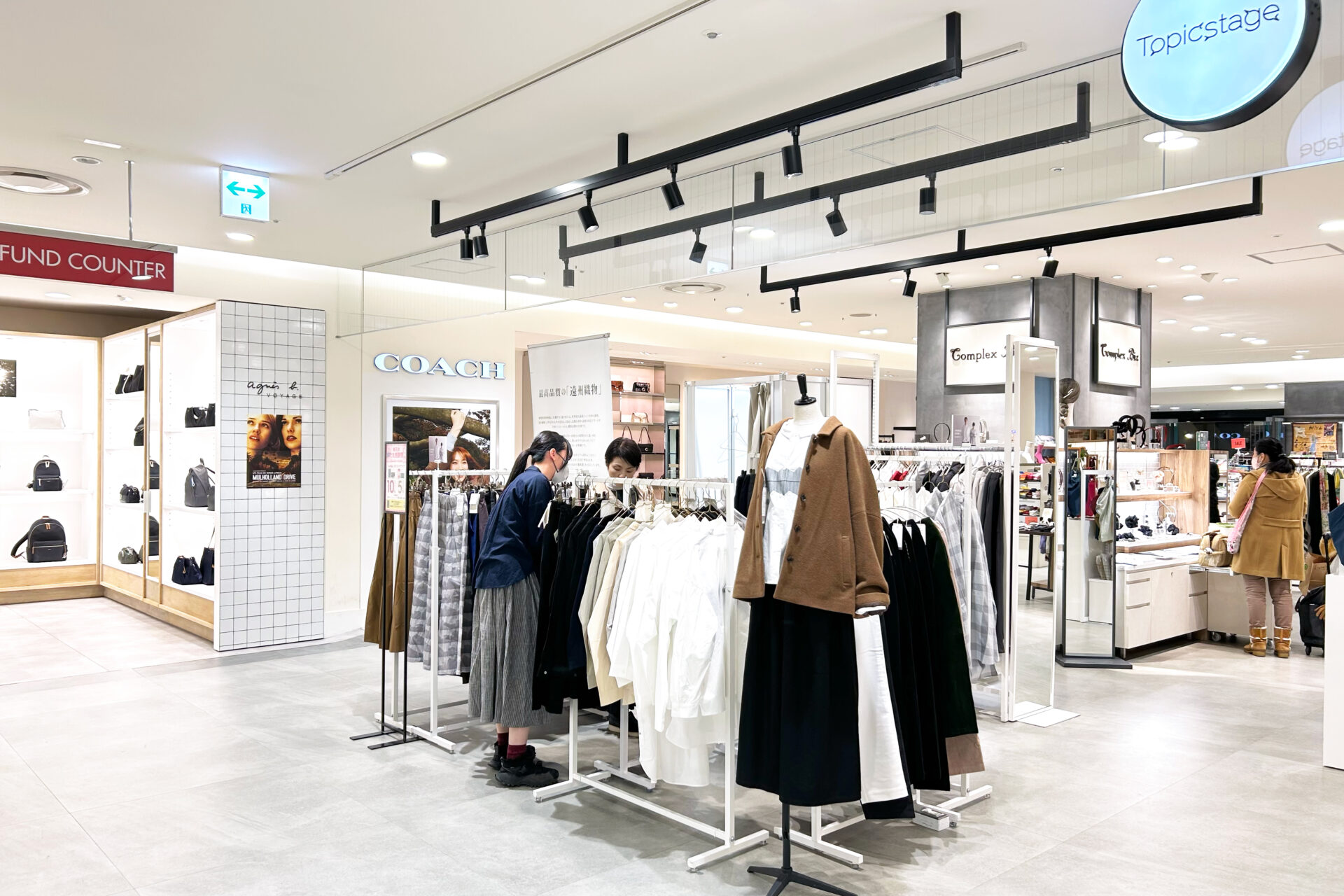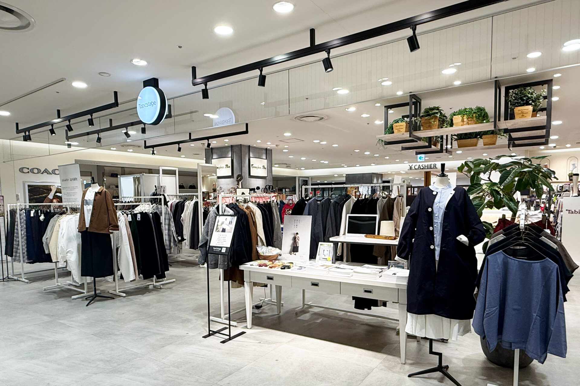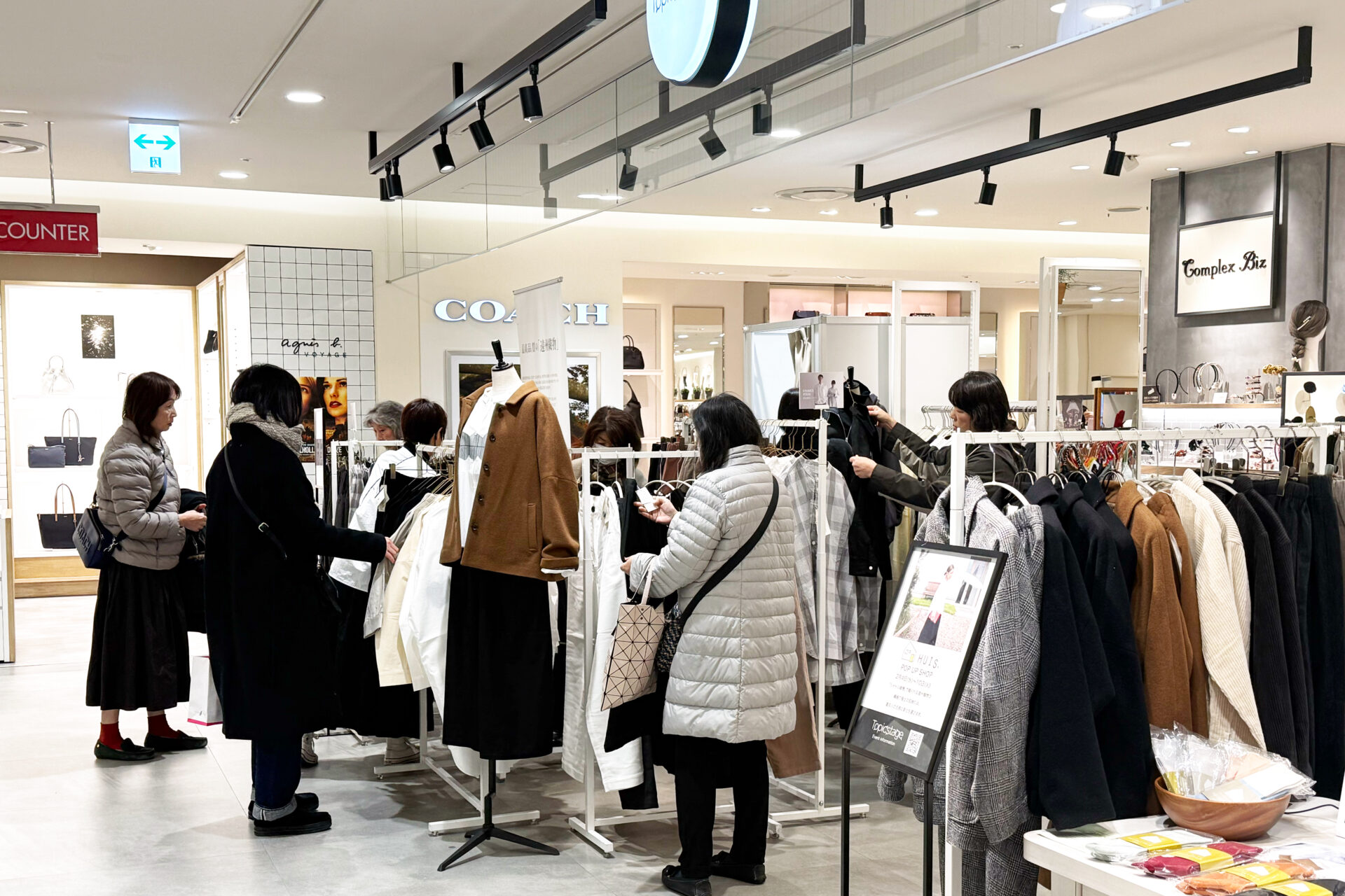 暖かくなるのが楽しみになるアイテムから、まだまだ寒さが厳しい今の季節に活躍する中間着やアウターまで、豊富なラインナップがエスカレーター降りてすぐのイベントスペースに並びます。