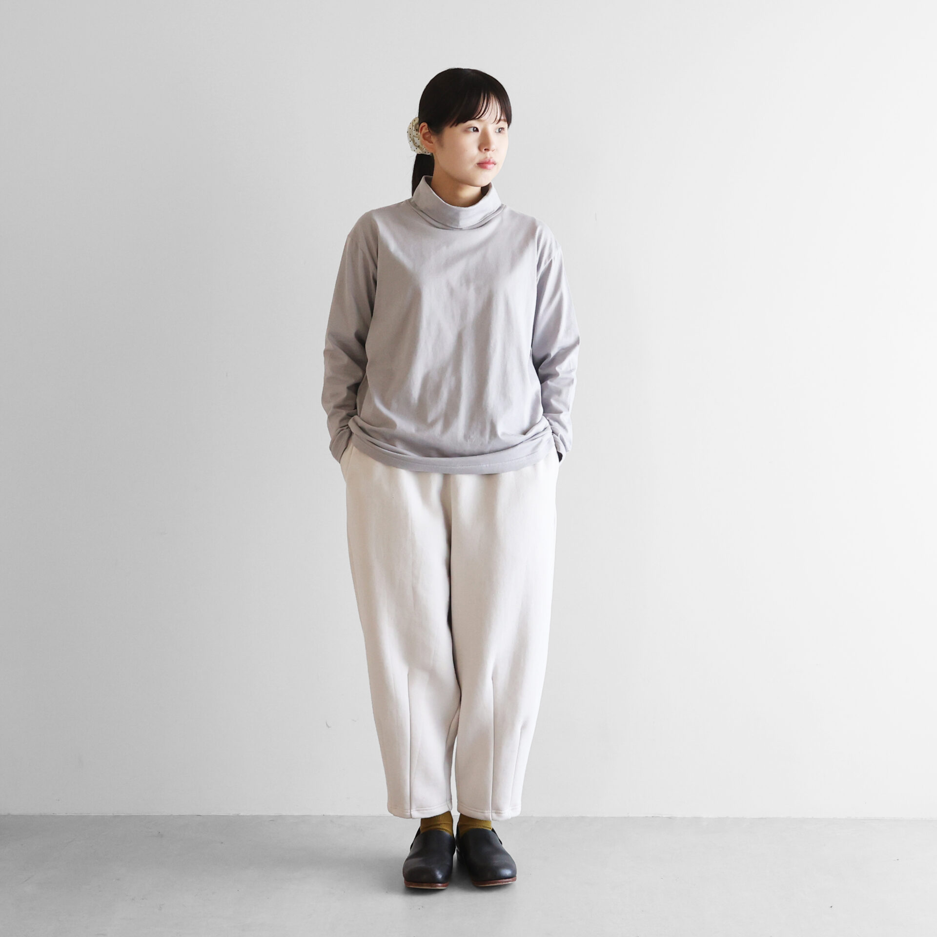 従来のスウェット素材にみられがちな硬さやごわつきを一切感じさせず、軽やかで、また、しなやかで落ち感のある素材感は、身体にしっとりと馴染みます。「超甘撚りの糸」が編み上げるSUVINスウェットは、唯一無二のスウェット素材です。