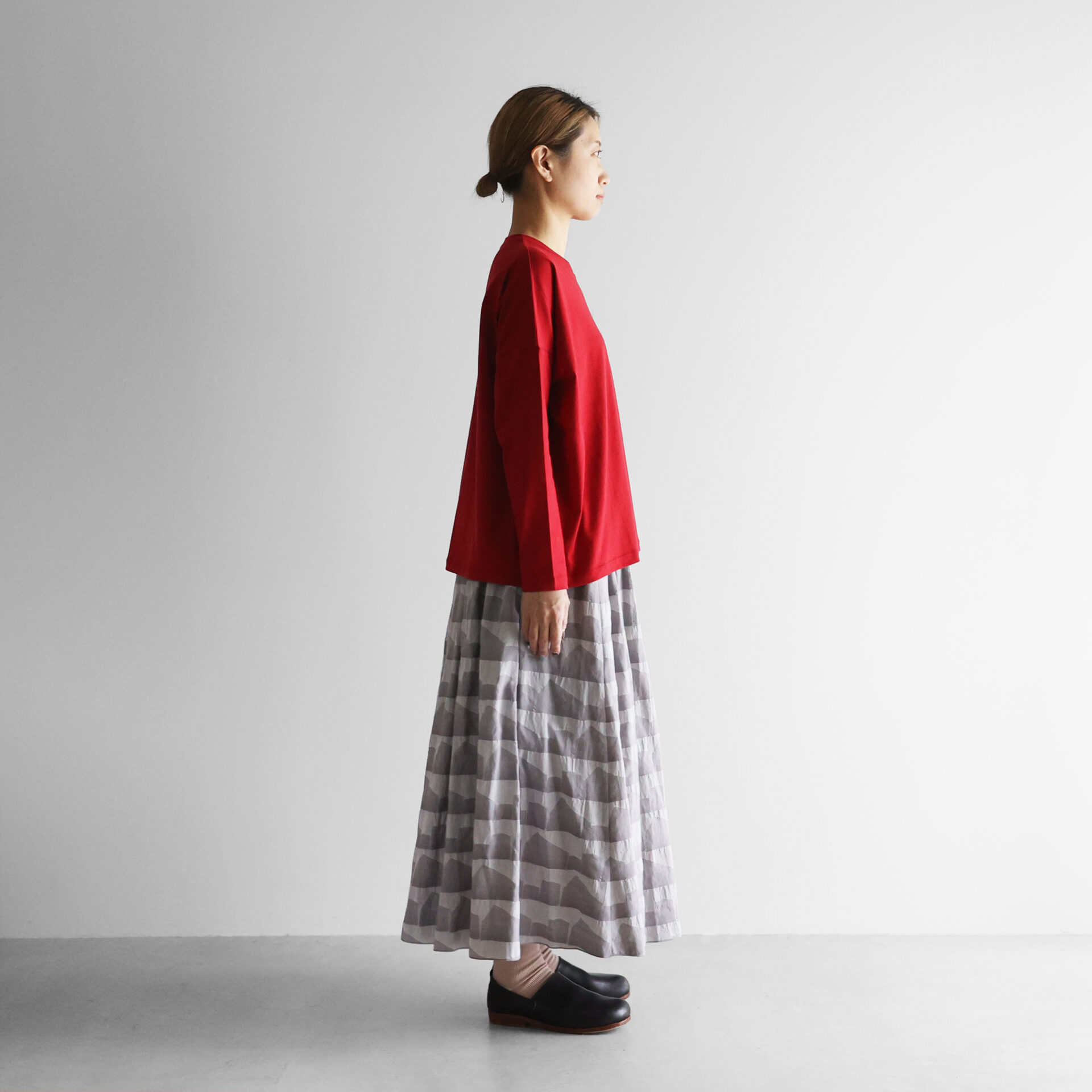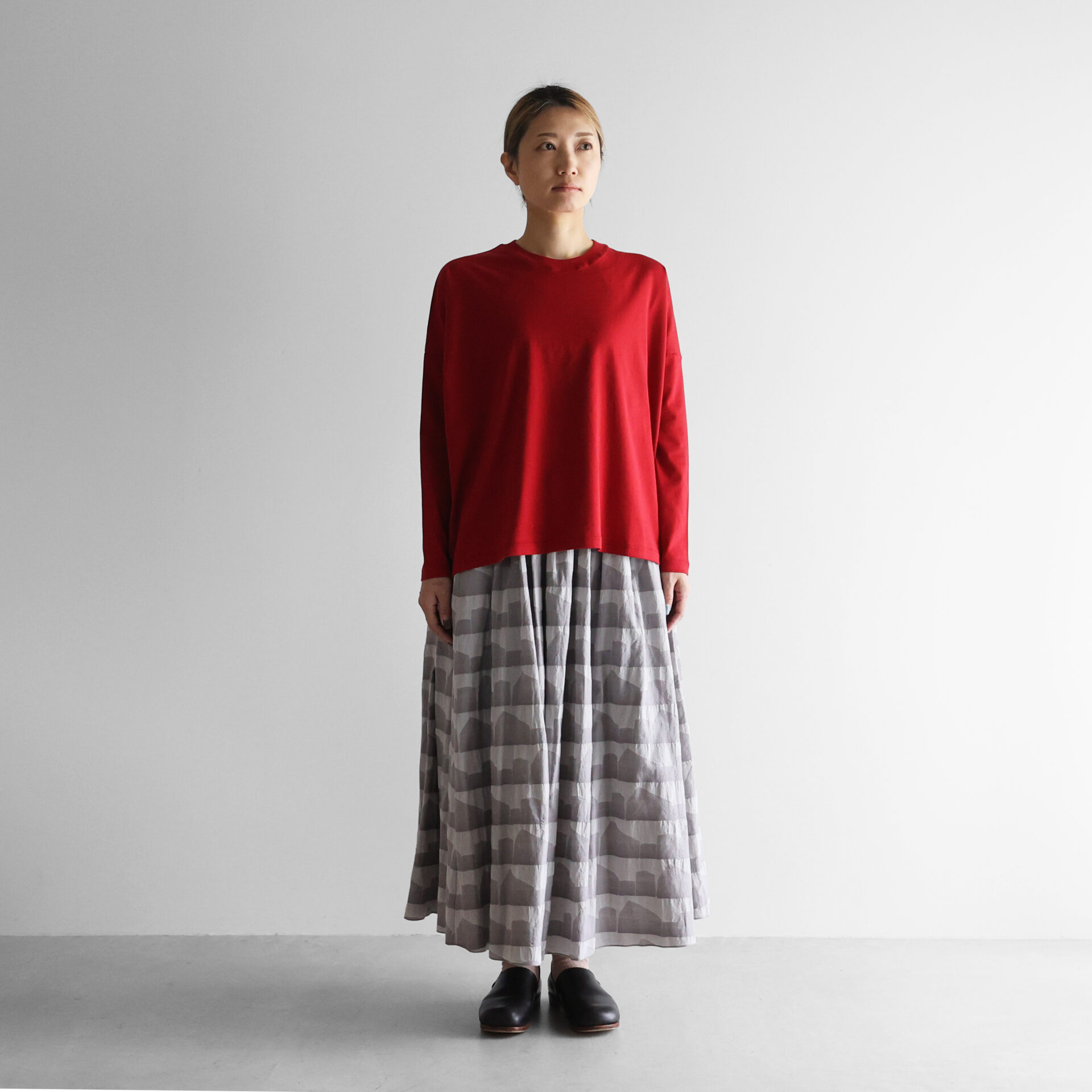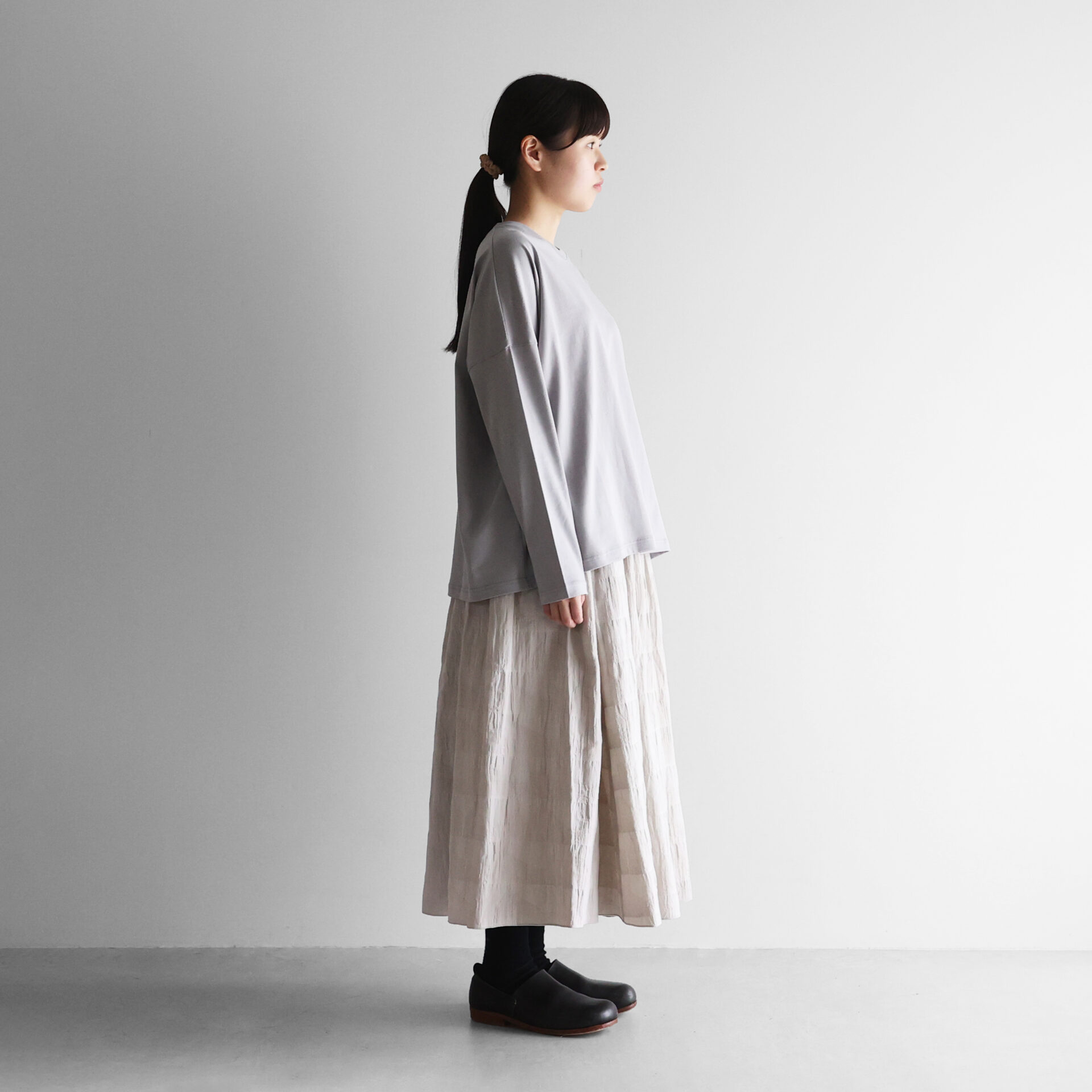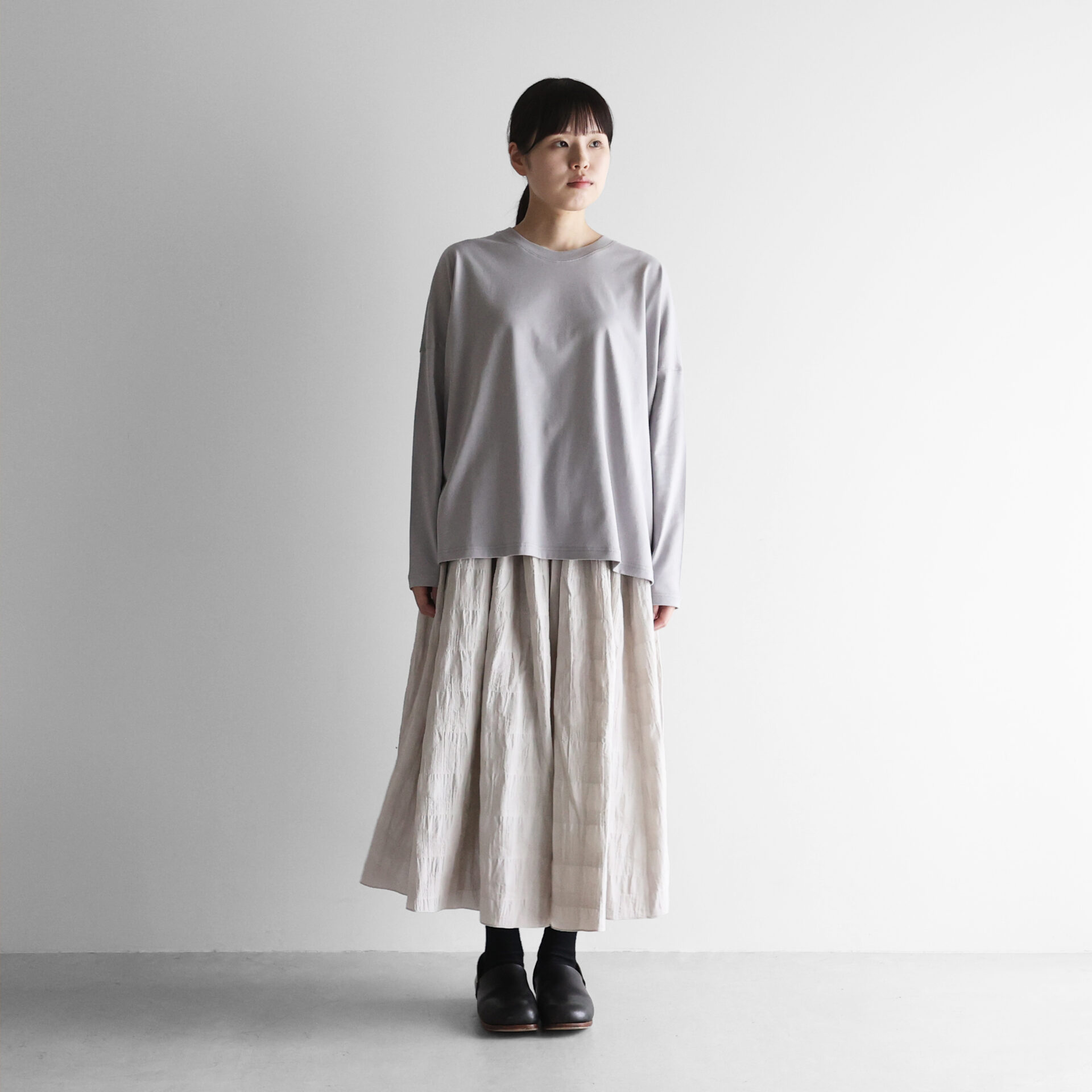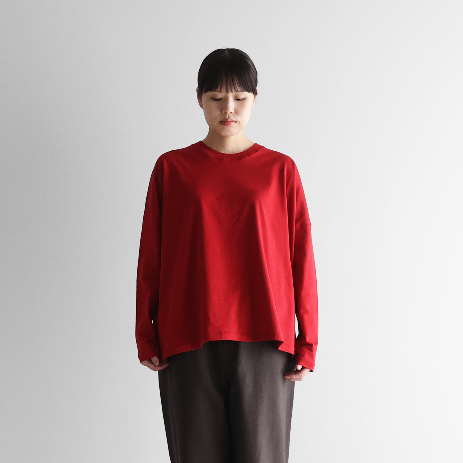 ゆったりと身幅をとったワイドシルエット&スクエアの形になった人気のCS104をベースにした長袖カットソー。着丈は少しショート目に、身幅はたっぷりととられた贅沢な仕様で、肩が自然に落ちるゆったりとしたシルエットが特徴です。体を包み込むようなゆるやかなラインが特徴です。