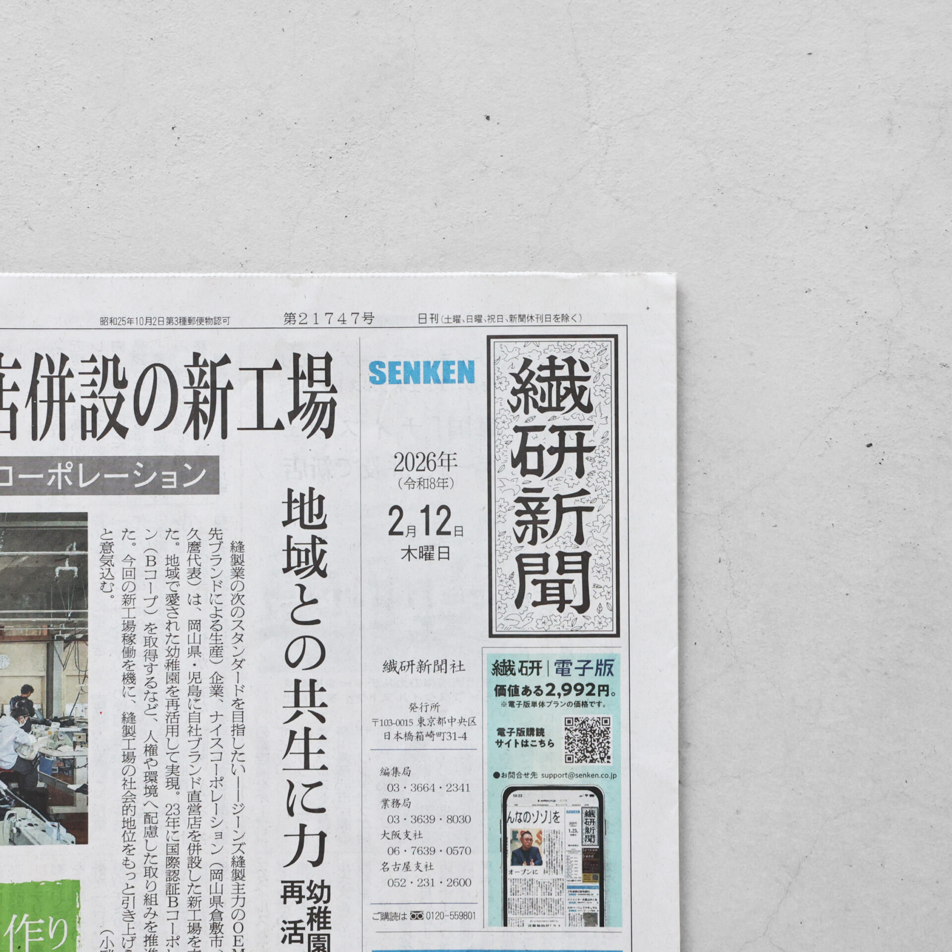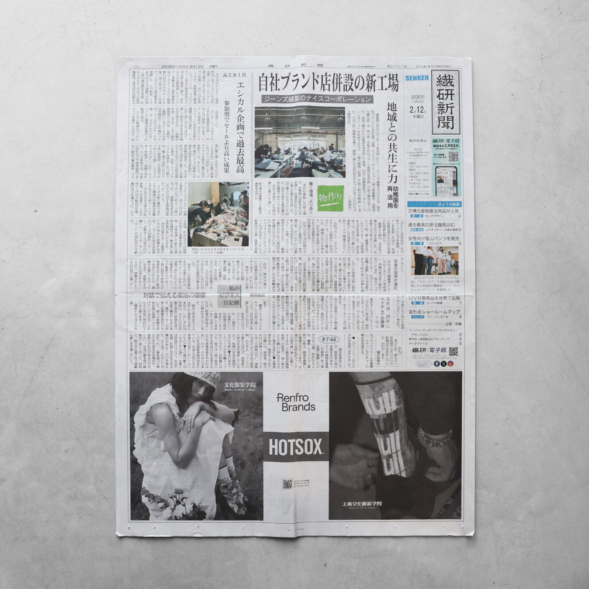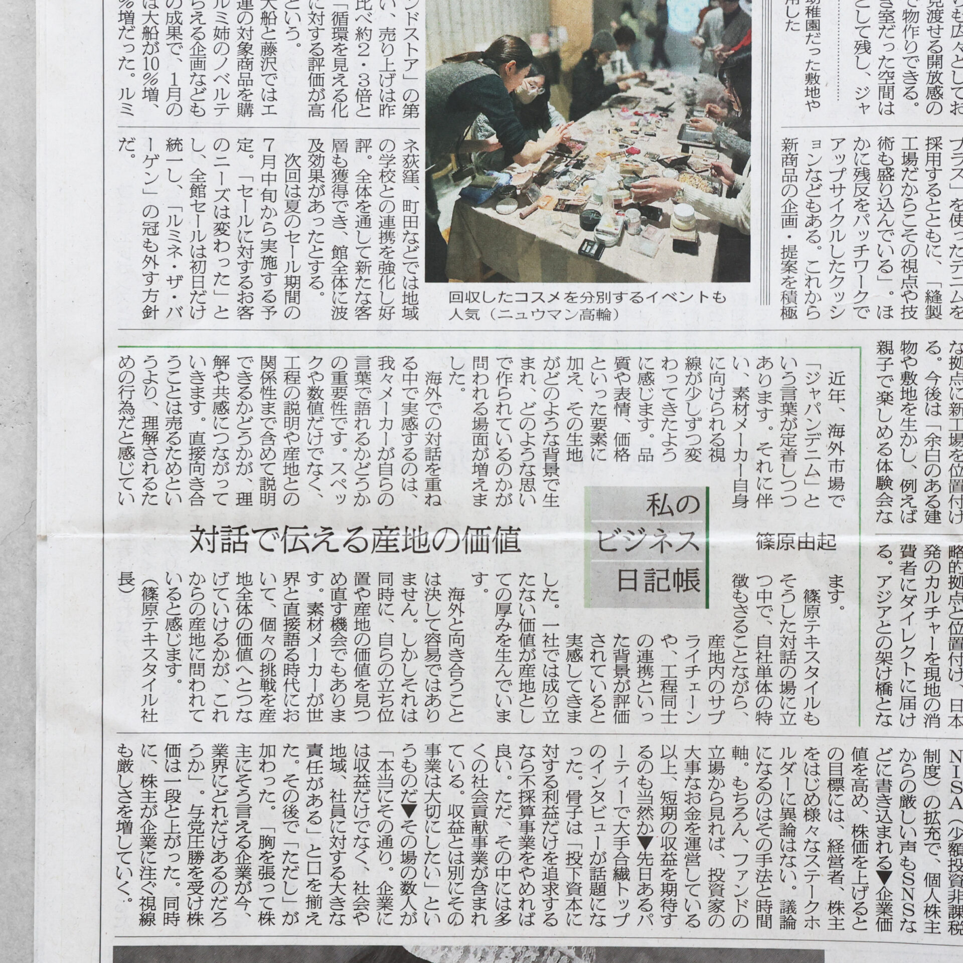 昨年HUISのコラムも掲載いただいた繊研新聞一面「私のビジネス日記帳」でデニムの世界的産地「三備産地」の篠原テキスタイル社長・篠原由起さんのコラムが掲載されていました。