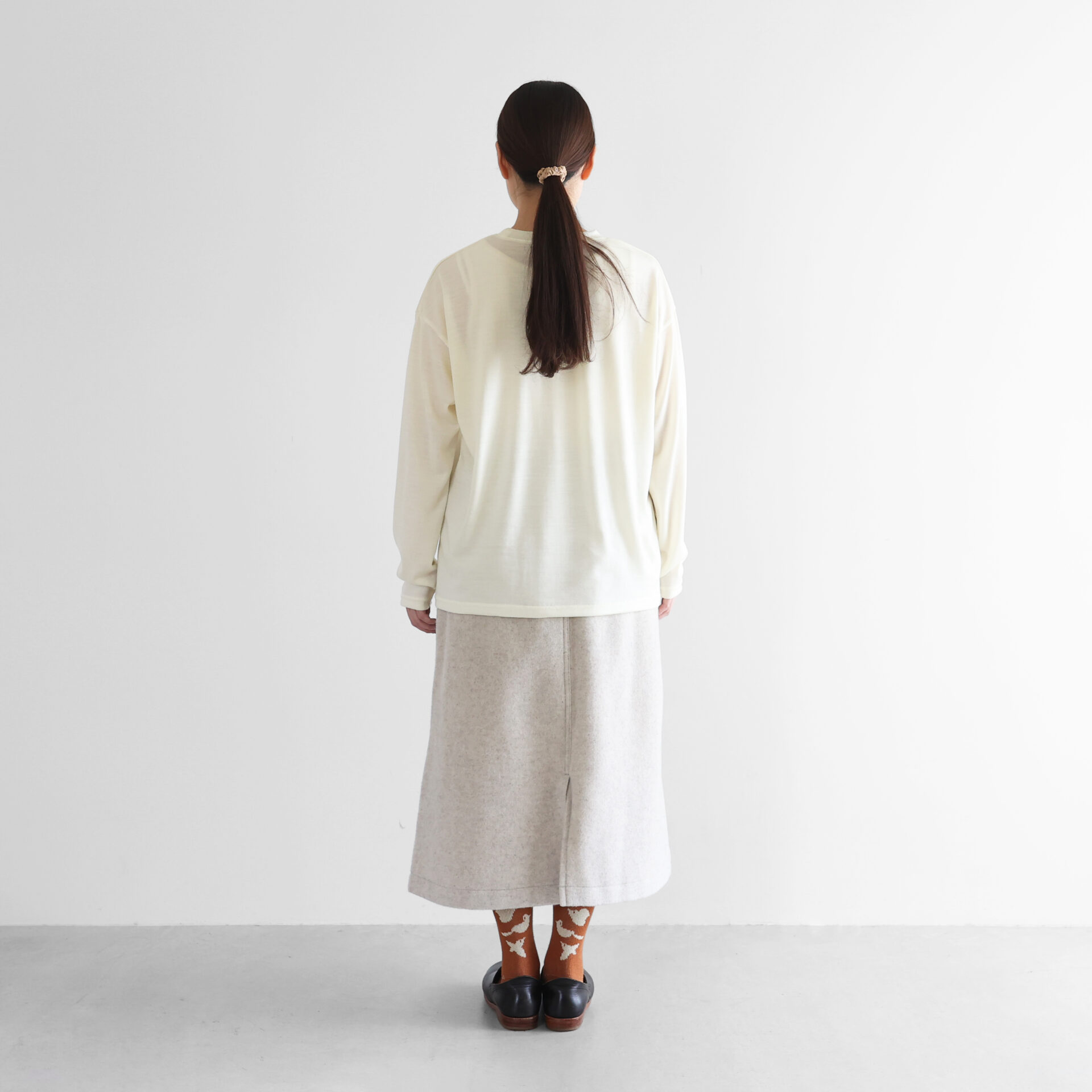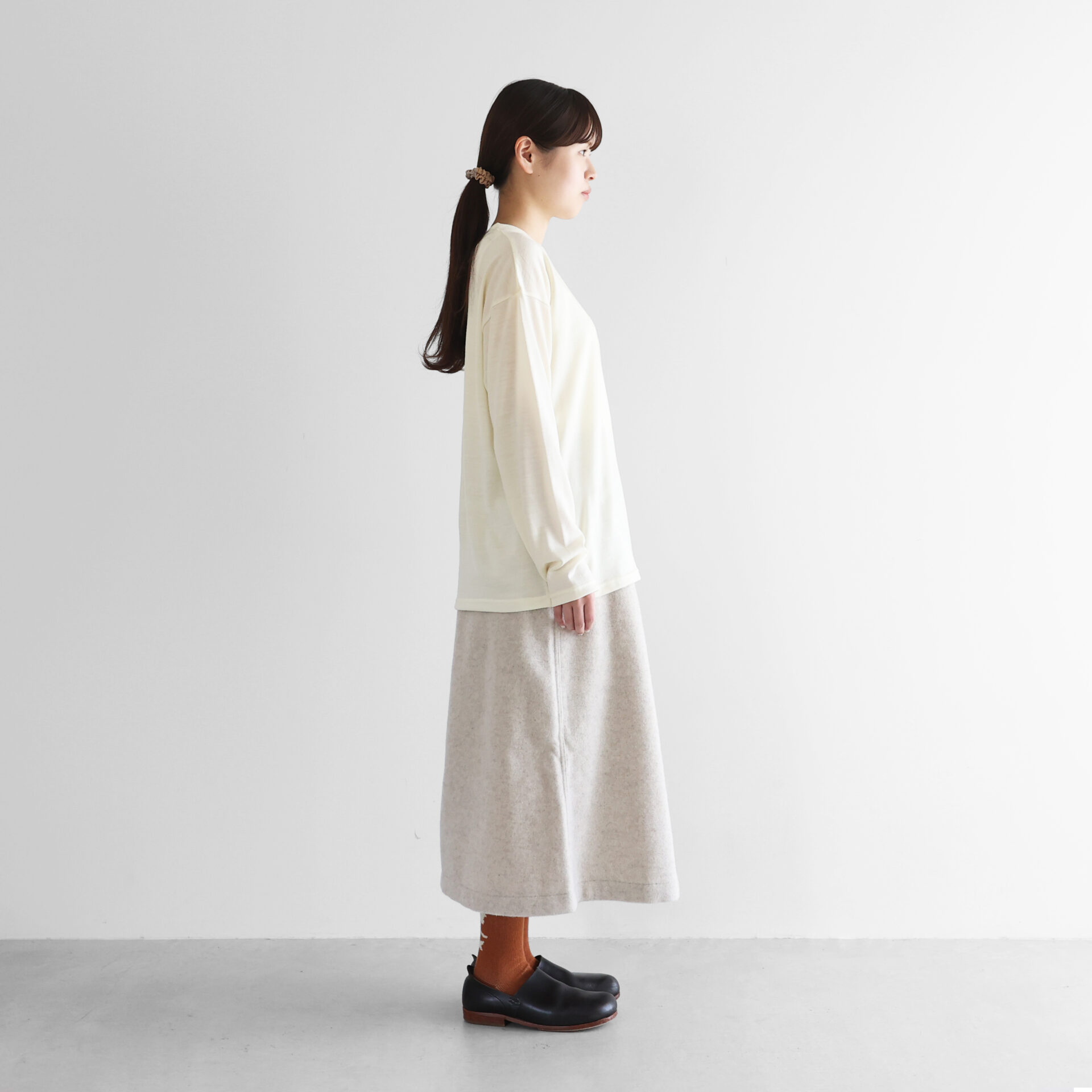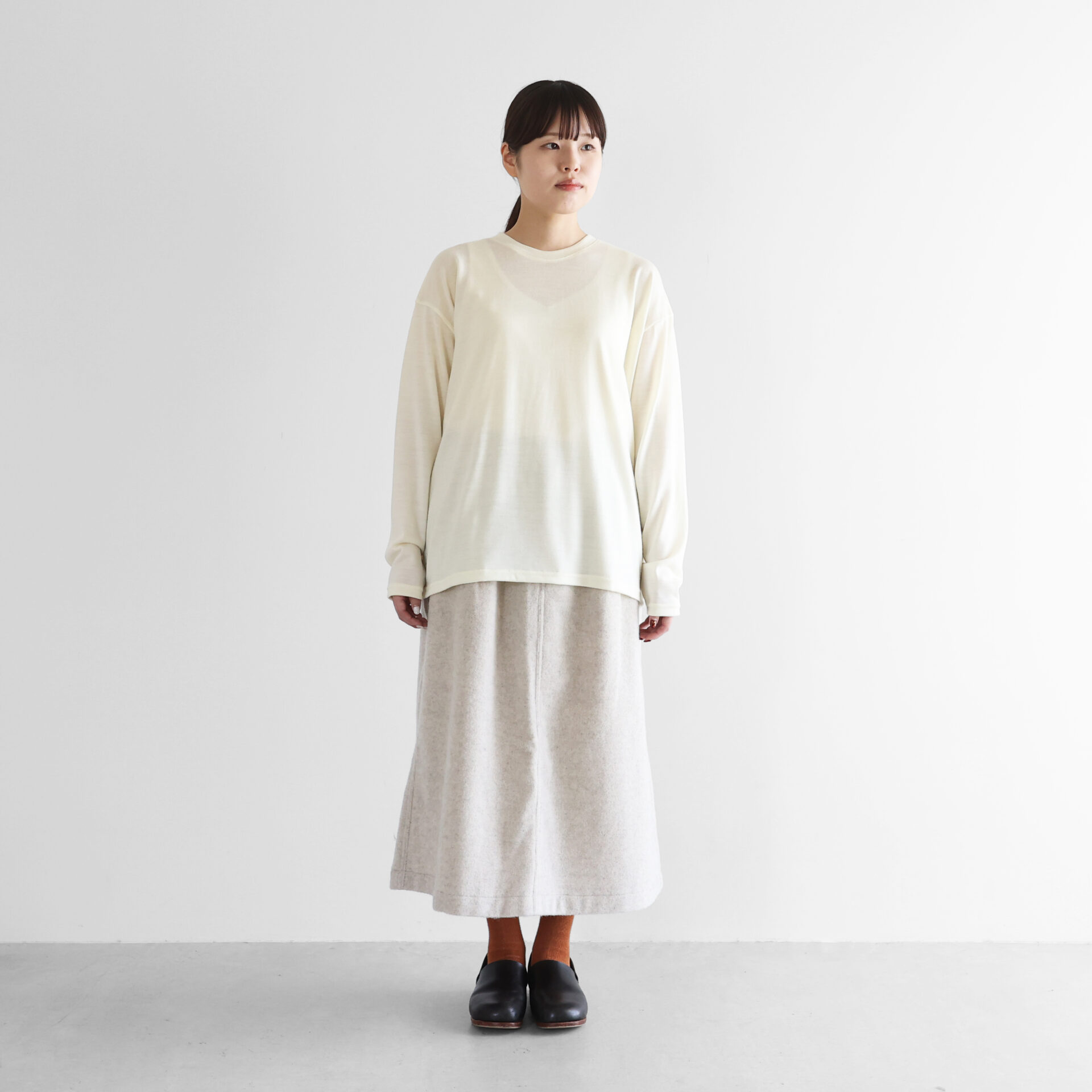 天竺編みしたこちらのウールカットソーは、ウールのデメリットであるチクチクとした感触がまったくなく、素肌にも着られる特別なウール100%のカットソーです。