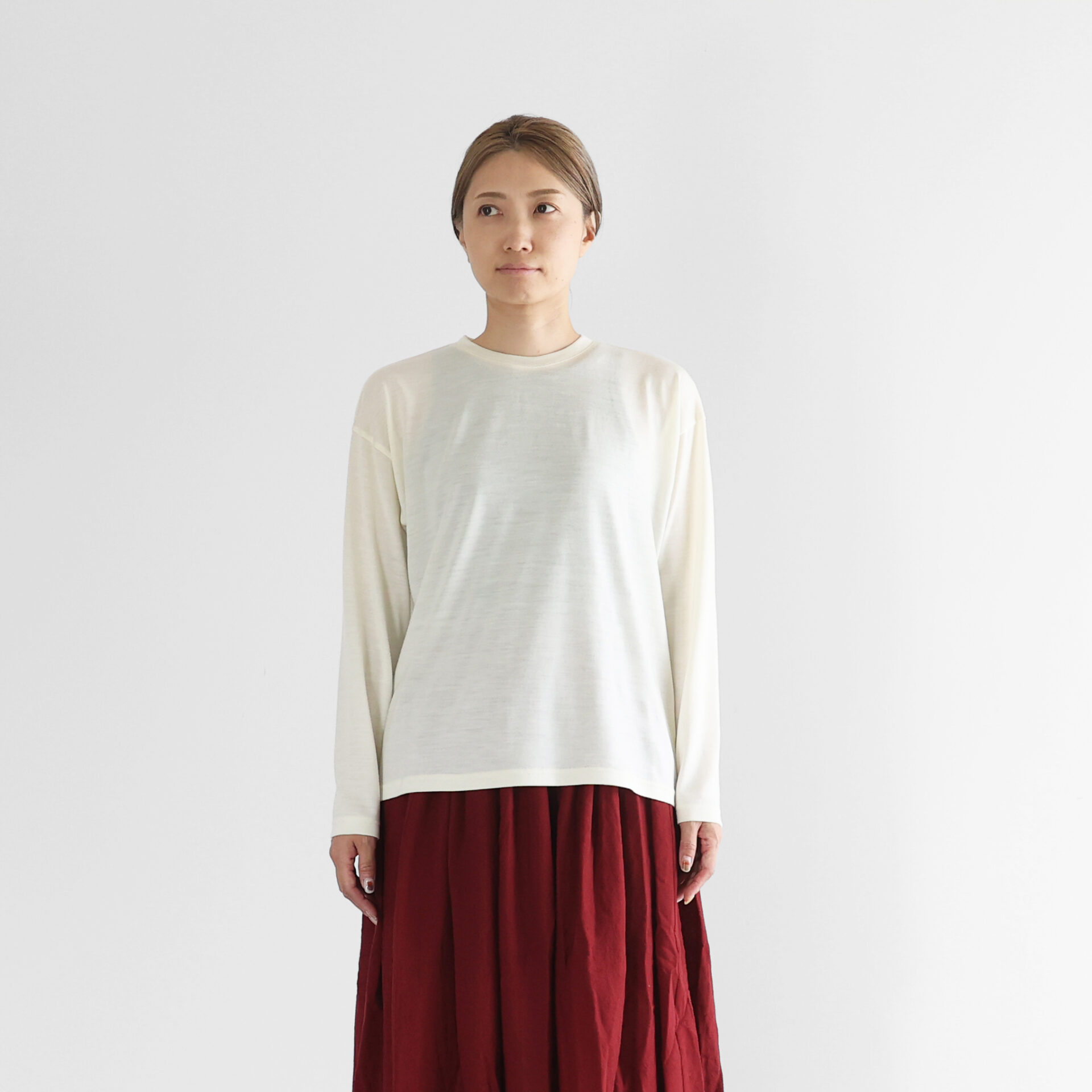 天竺編みしたこちらのウールカットソーは、ウールのデメリットであるチクチクとした感触がまったくなく、素肌にも着られる特別なウール100%のカットソーです。