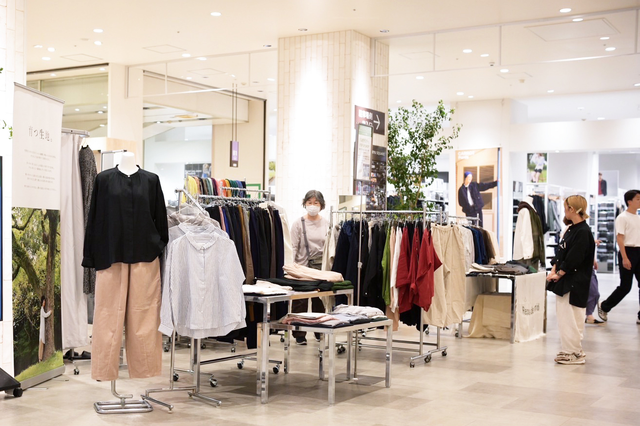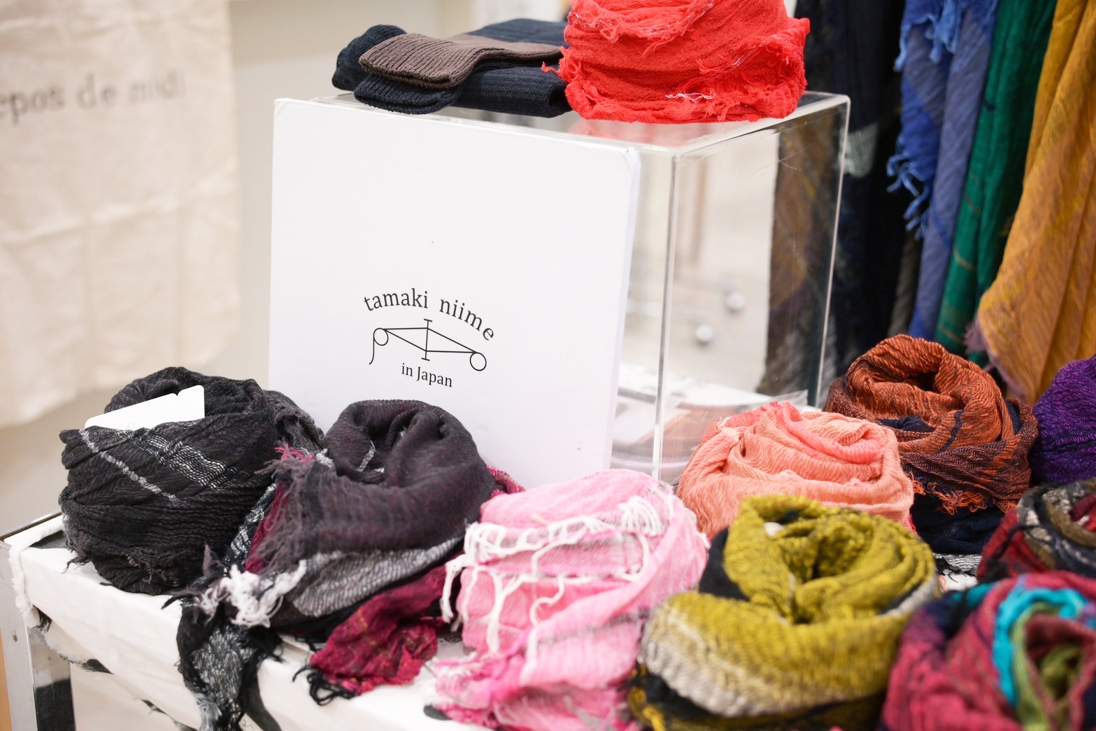 うなぎの寝床さんのMONPE、tamaki niimeさんのワンピースやストールなど国内繊維産地の銘品とともに、遠州織物によるHUISの春夏新作アイテムもご覧いただけます。