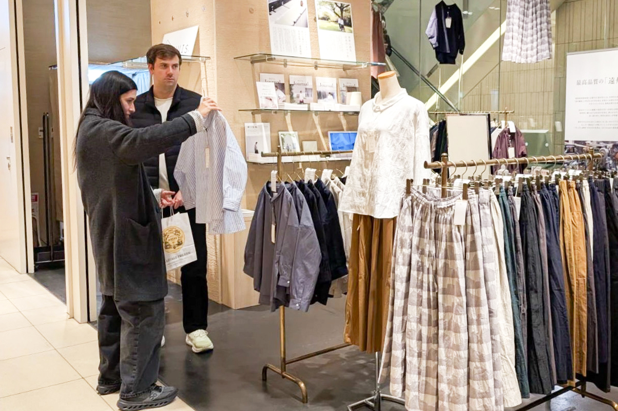デザインや着心地もさることながら、遠州でつくられる風合い豊かな生地をとても喜んでくださり、ご購入いただきました。