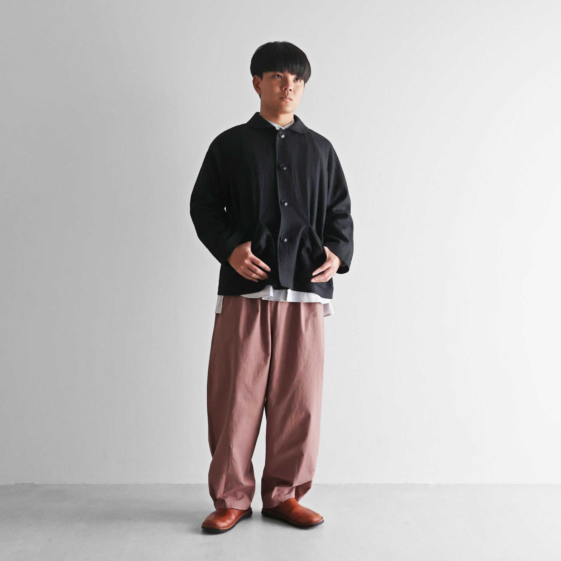デザインは、316ミドルコートがショートタイプになったコートで、丸みのある襟とどなたでも合わせやすいシルエットが特徴。さわやかな配色ボタンのカラーもポイントで重くなりがちなアウターを、素材感と色合いで、軽やかに演出します。