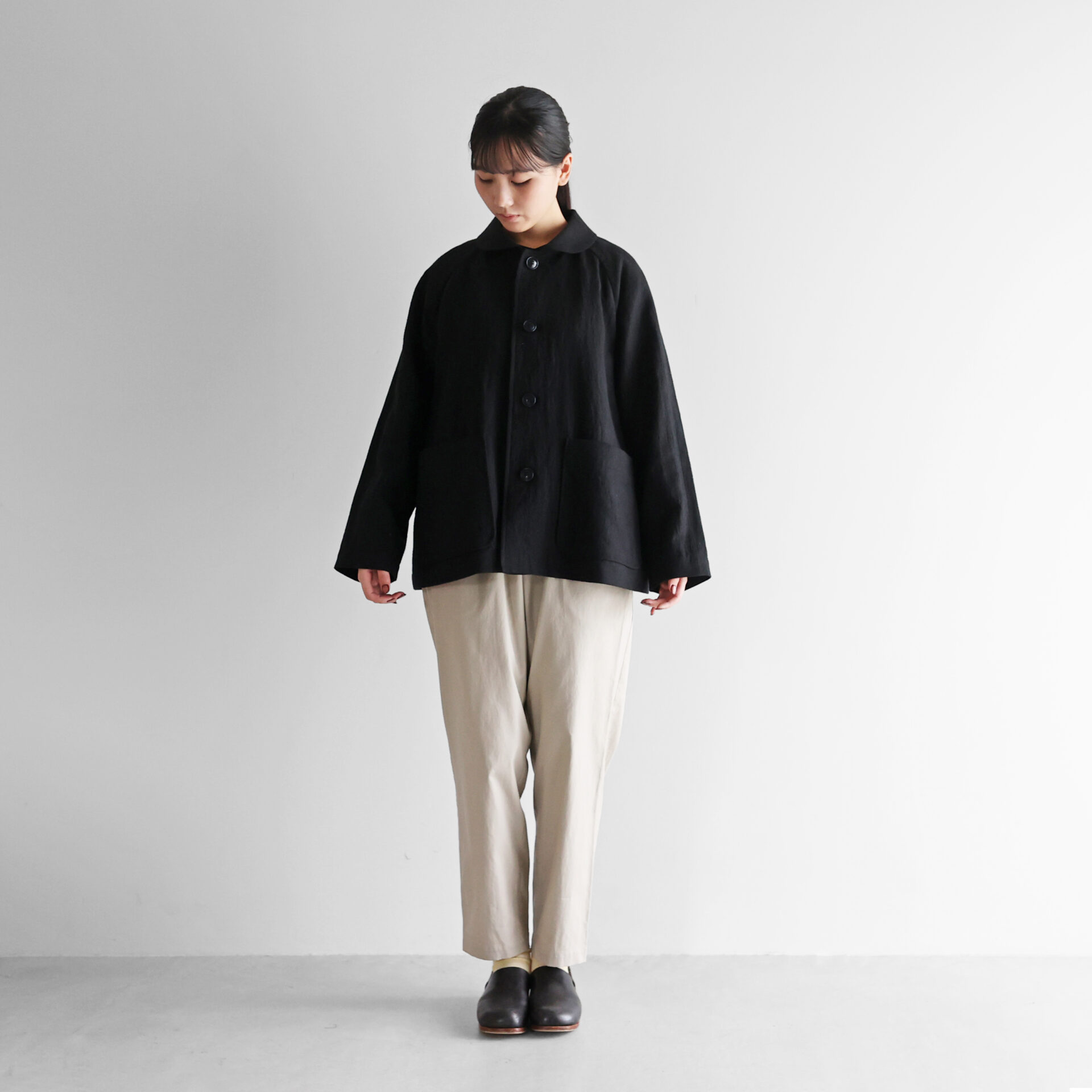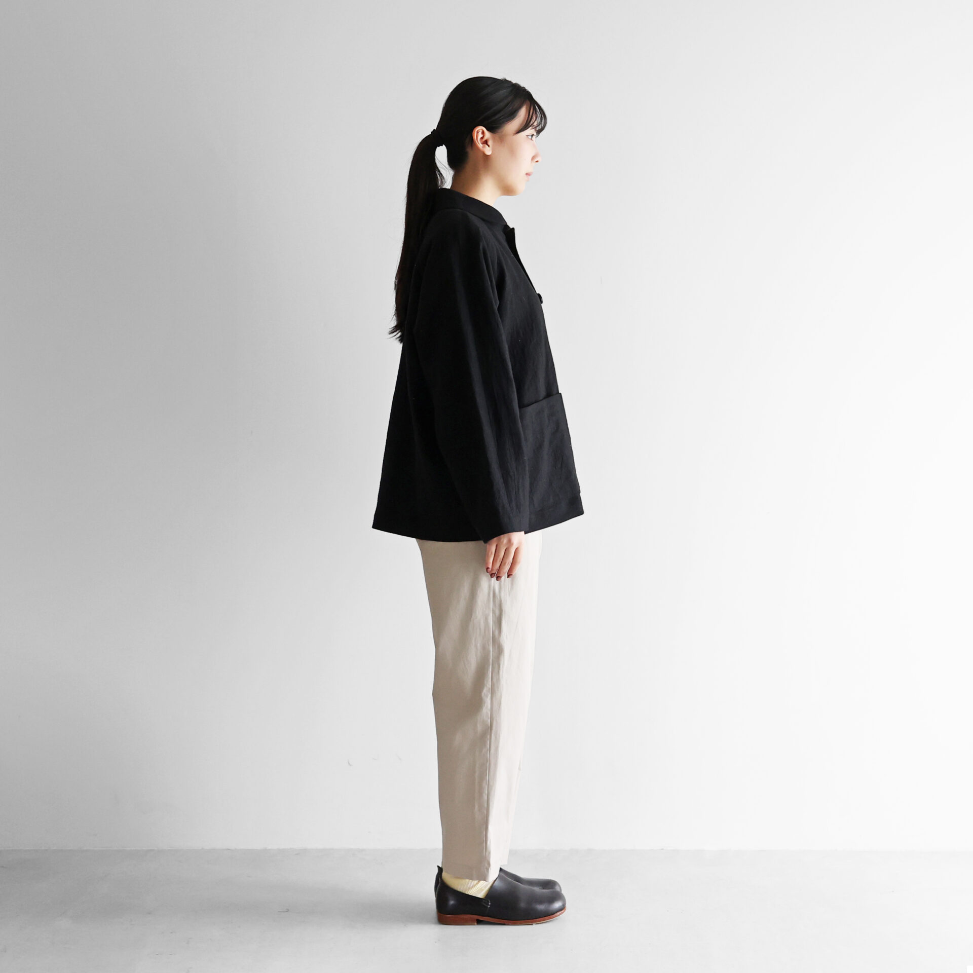 リネンとラミーを混紡した糸を使用し、旧式のレピア織機でゆっくりと織り上げた風合い豊かな生地でラミーの光沢感とコシ、リネンの柔らかさがミックスした独特な素材感です。 天日干し加工は、職人が手作業で丁寧に釜染めし、遠州のたっぷりの日光と風の中で泳ぐように干して仕上げる特別な製法。素朴でナチュラルな色味と風合いが特徴です。