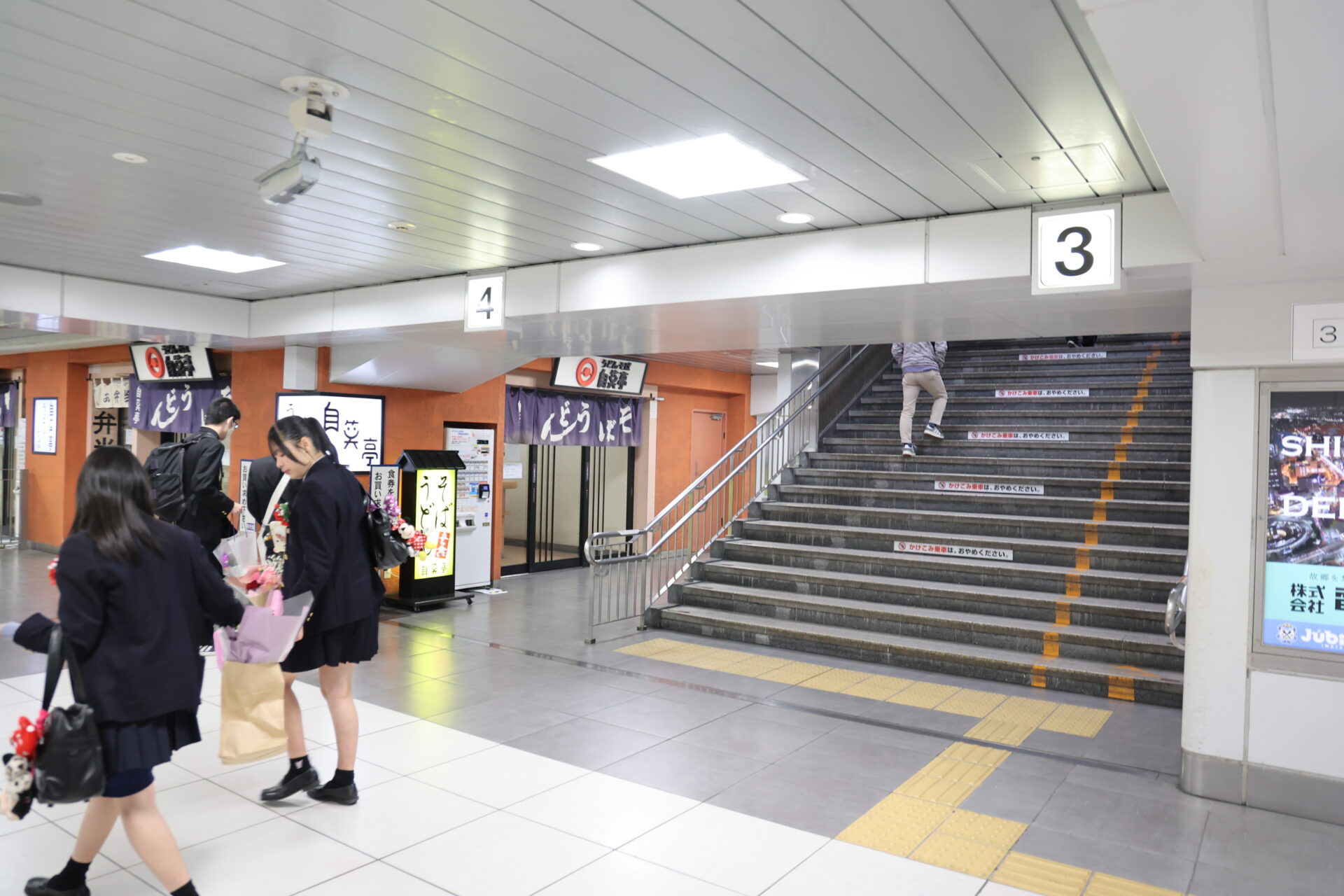 そして新たに3月から、改札内、上りホームへと続く階段にも新しいデザインのポスターが設置されました。