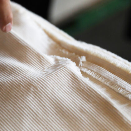コーデュロイの特徴的な「畝(うね)」。 実は、専門の職人が1本1本手作業で切っています。 【コーデュロイの特徴 "畝"をつくるカッチング】 ...