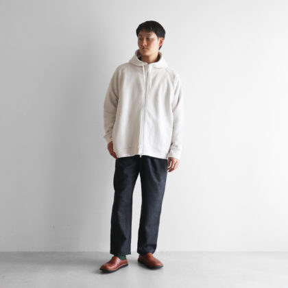 高級ウールの世界的な産地、尾州で織られた縮絨ウールフランネル素材です。尾州産地の技術により、通常は廃棄されるウールをリサイクルした再生ウール...
