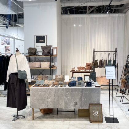 渋谷スクランブルスクエア9F、渋谷ショールーム併設の「さんちギャラリー」にて、革と古布の表情を生かしたものづくりを行う「savica」さんの...