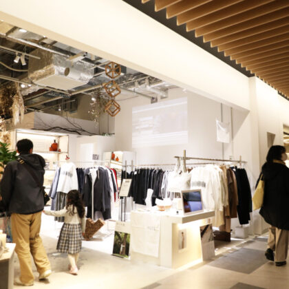 渋谷スクランブルスクエア9F、渋谷ショールーム併設の「さんちギャラリー」にて、肌にも環境にも優しい商品づくりを行うニットブランド「cucum...