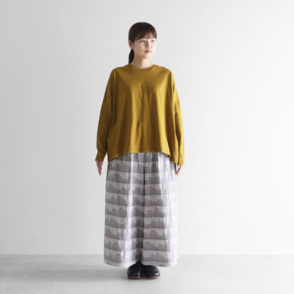 \先染め朱子織シャトルジャガードスカ... 現代において洋服用のシャトル式ジャガード織機はほとんど残っておらず、加えてコットン素材のジャガード生地は世界的にも希少です。先染めジャガード...