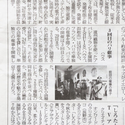 記事では、遠州織物を使ったものづくりに加え、パリで開催している単独POPUPについても取り上げていただいています。 現地での出会いや反応、そ...