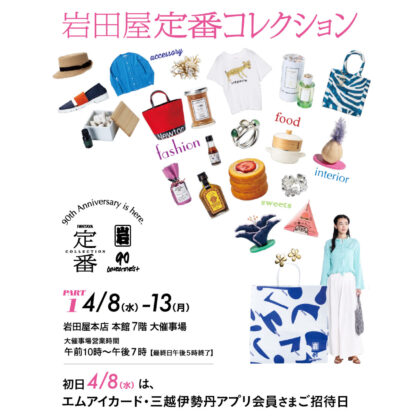 4/8(水)〜4/13(月)は、岩田屋本店で開催される催事「岩田屋定番コレクション」に出展させていただきます。 ※初日(4/8)のご入場は、...