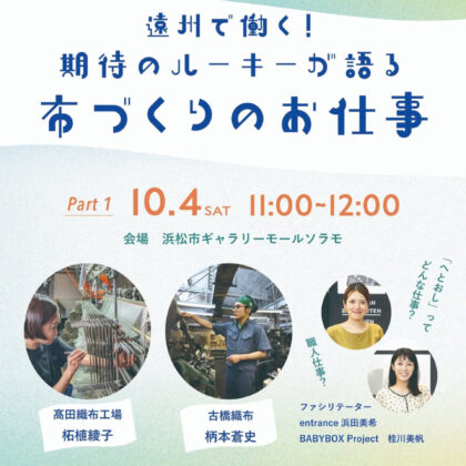 \10/4(土)・5(日)「はままつ... 遠州の布たちが集まる一大イベント「はままつ染め織りマーケット 2025」では、entranceメンバー「BABYBOX Project」によ...