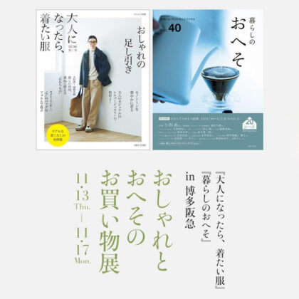 こちらのイベントはそれぞれの雑誌に登場するブランドや作り手さんが阪急博多に集結し、大人世代にぴったりの服と小物と出会えたり、毎日の習慣がちょ...