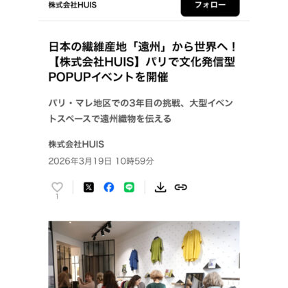 3回目となるパリでの単独POPUPですが、今年はこれまでより広い会場にて【文化発信型】POPUPイベントとして開催いたします! これまではス...