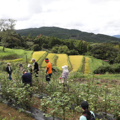 令和4年度からは「久留女木地域振興協議会」が発足、地元住民と域外耕作者による「竜宮小僧の会」が棚田の保全活用、収穫イベントなど関係人口創出ためのイベントを企画運営しています。本プロジェクトでは、「久留女木地域振興協議会」に綿花栽培を委託しています。